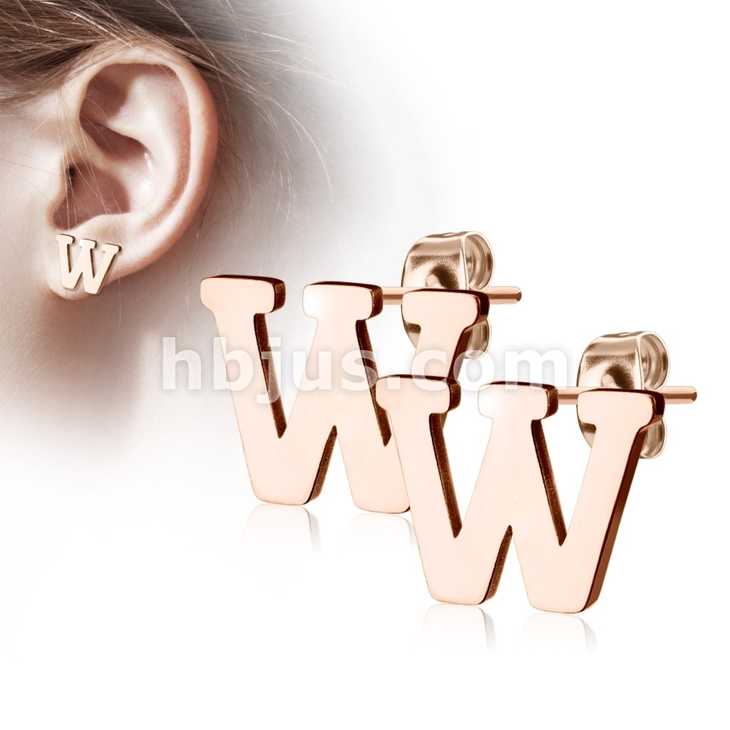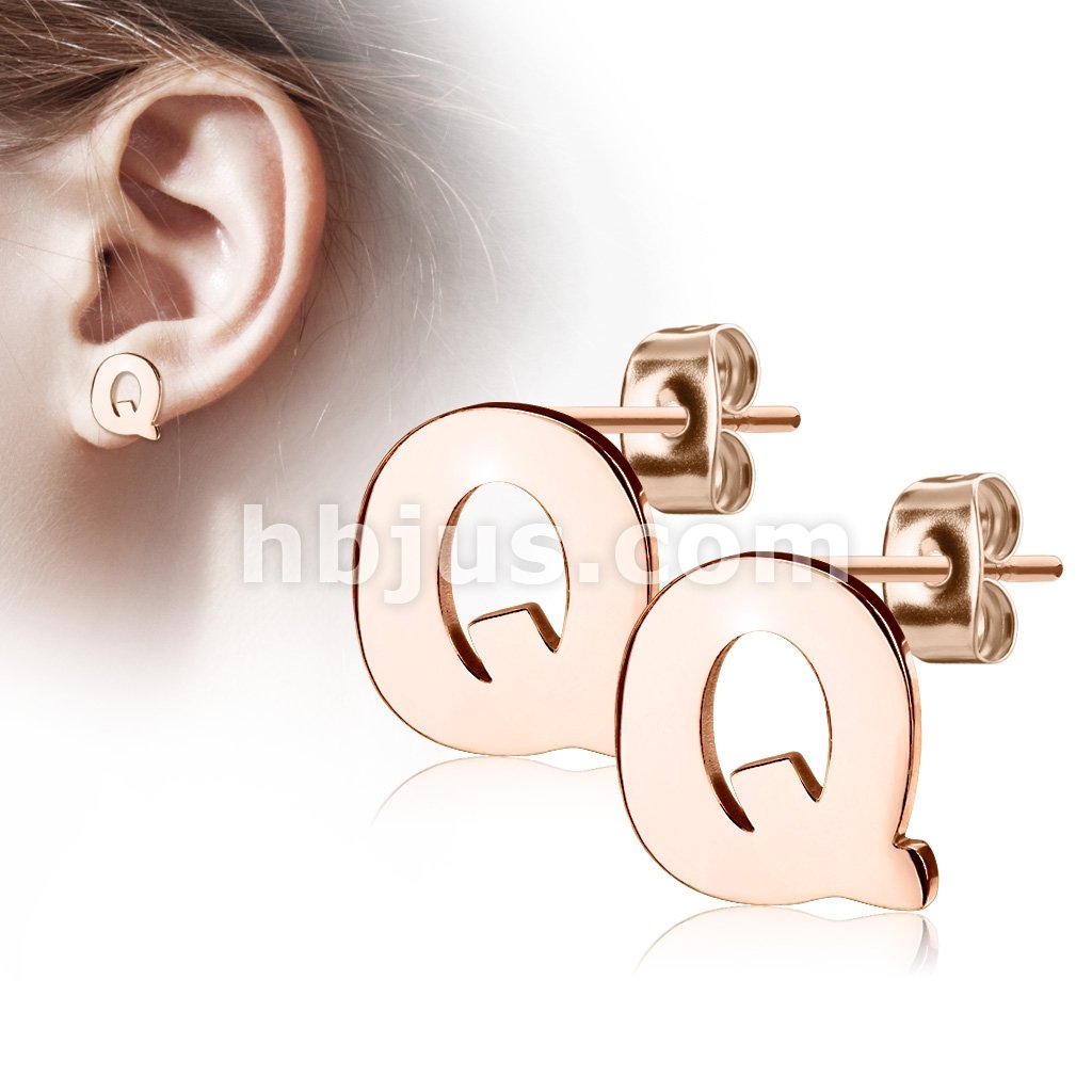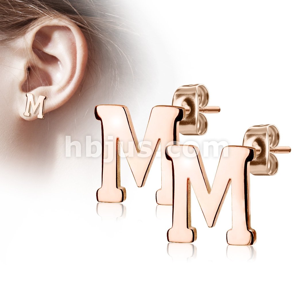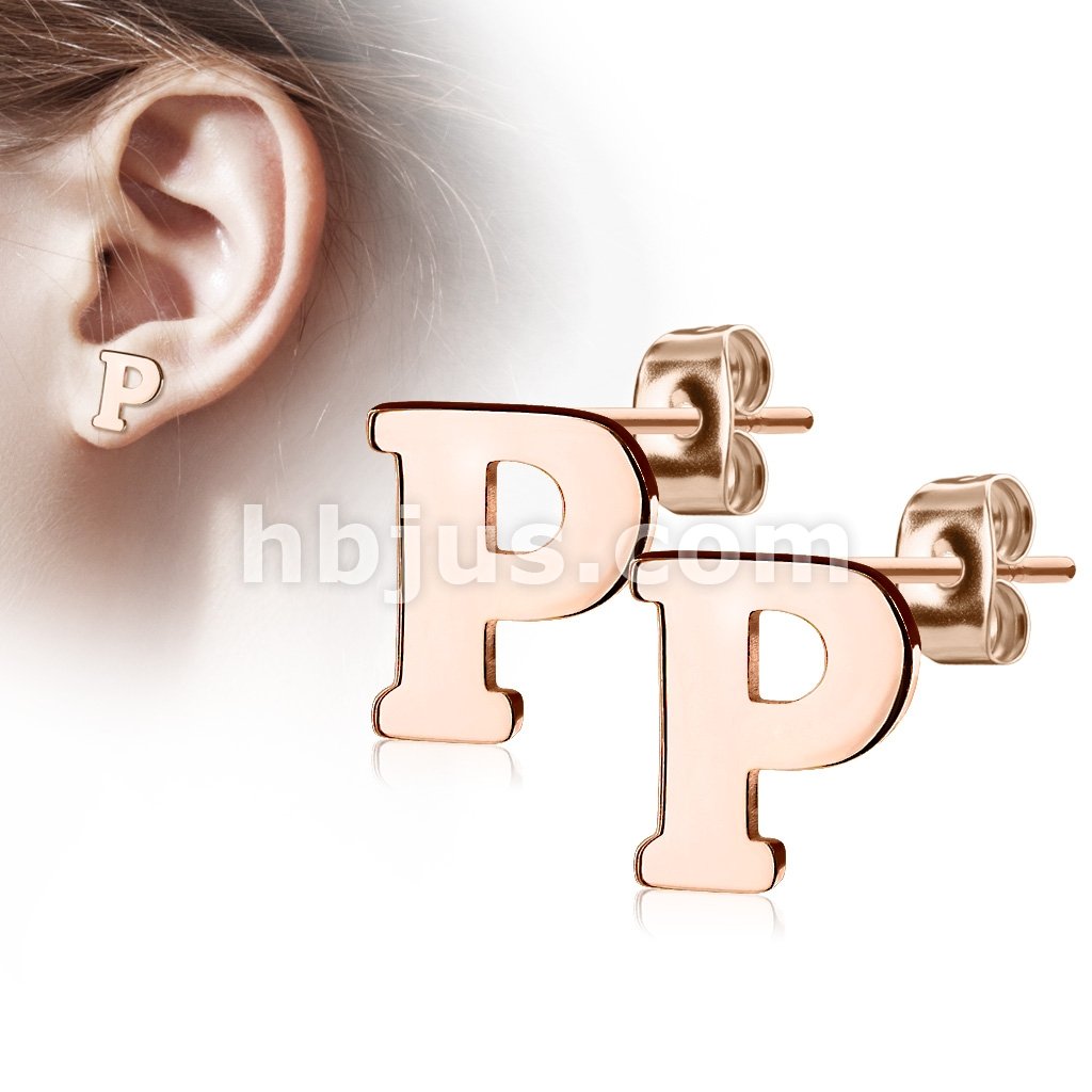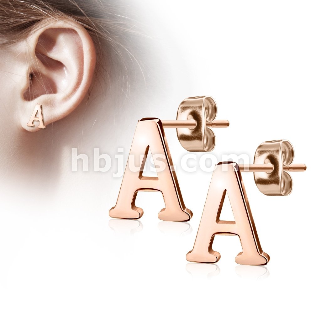 Pair of Rose Gold IP Alphabet Initial 316L Stainless Steel Earring Studs