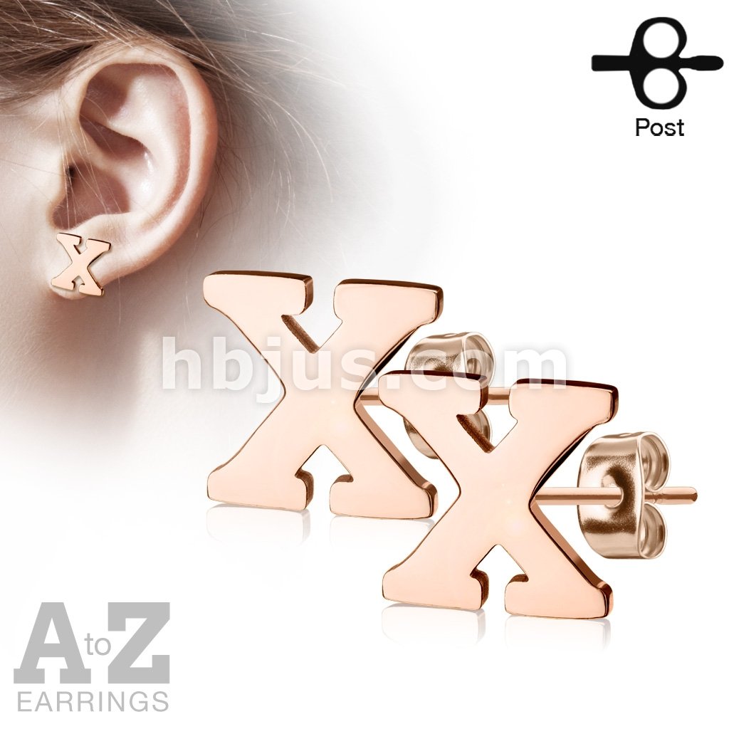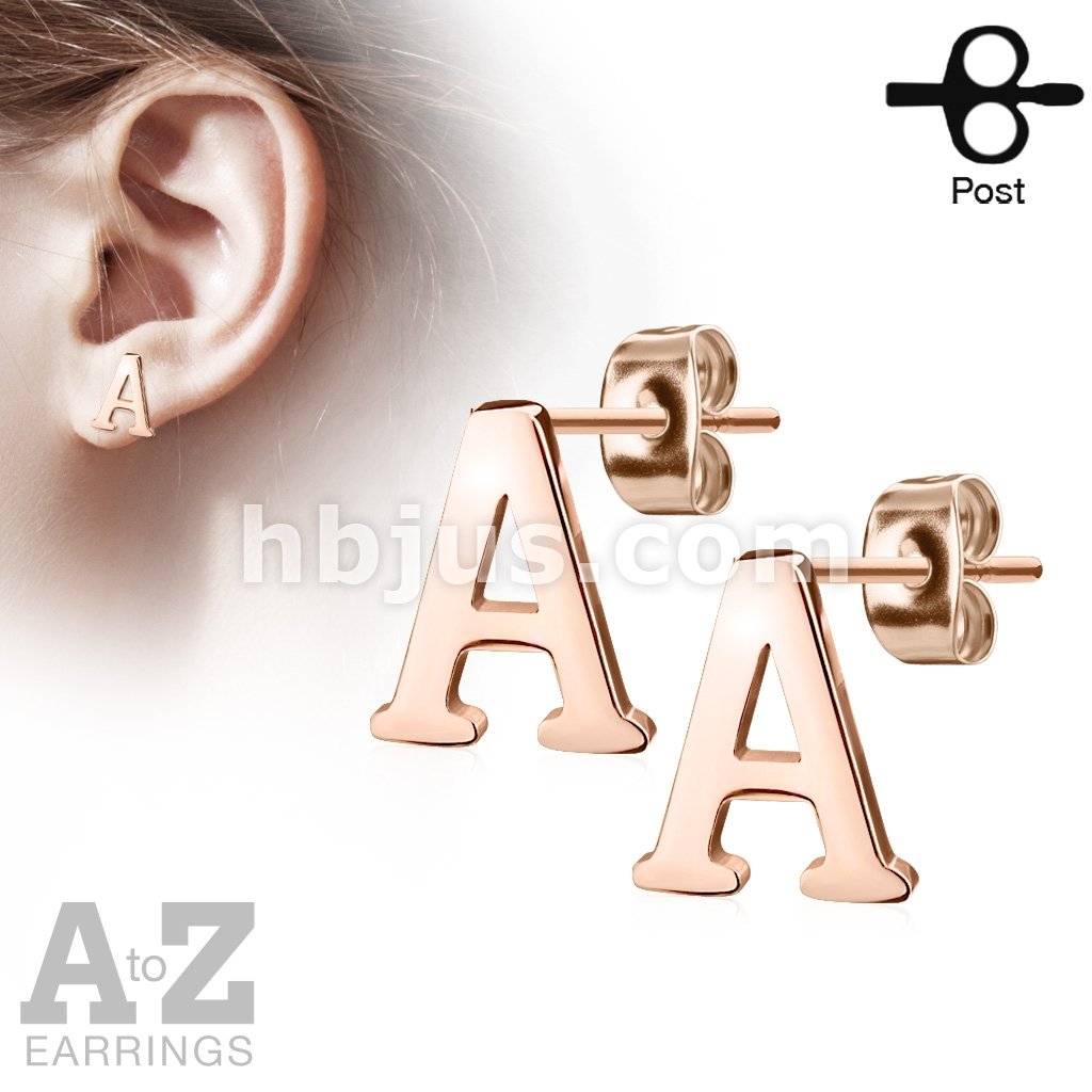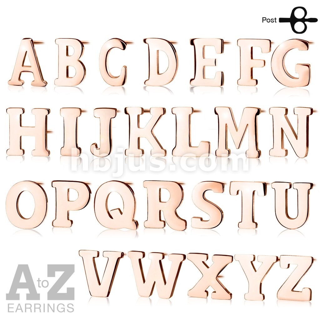 Pair of Rose Gold IP Alphabet Initial 316L Stainless Steel Earrings 52pc Pack (26 Alpahabet Pairs x 2)