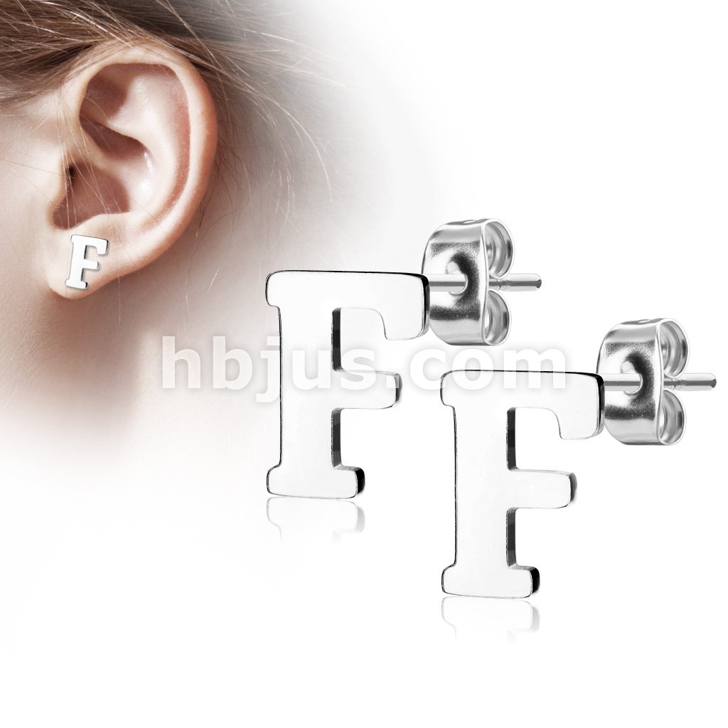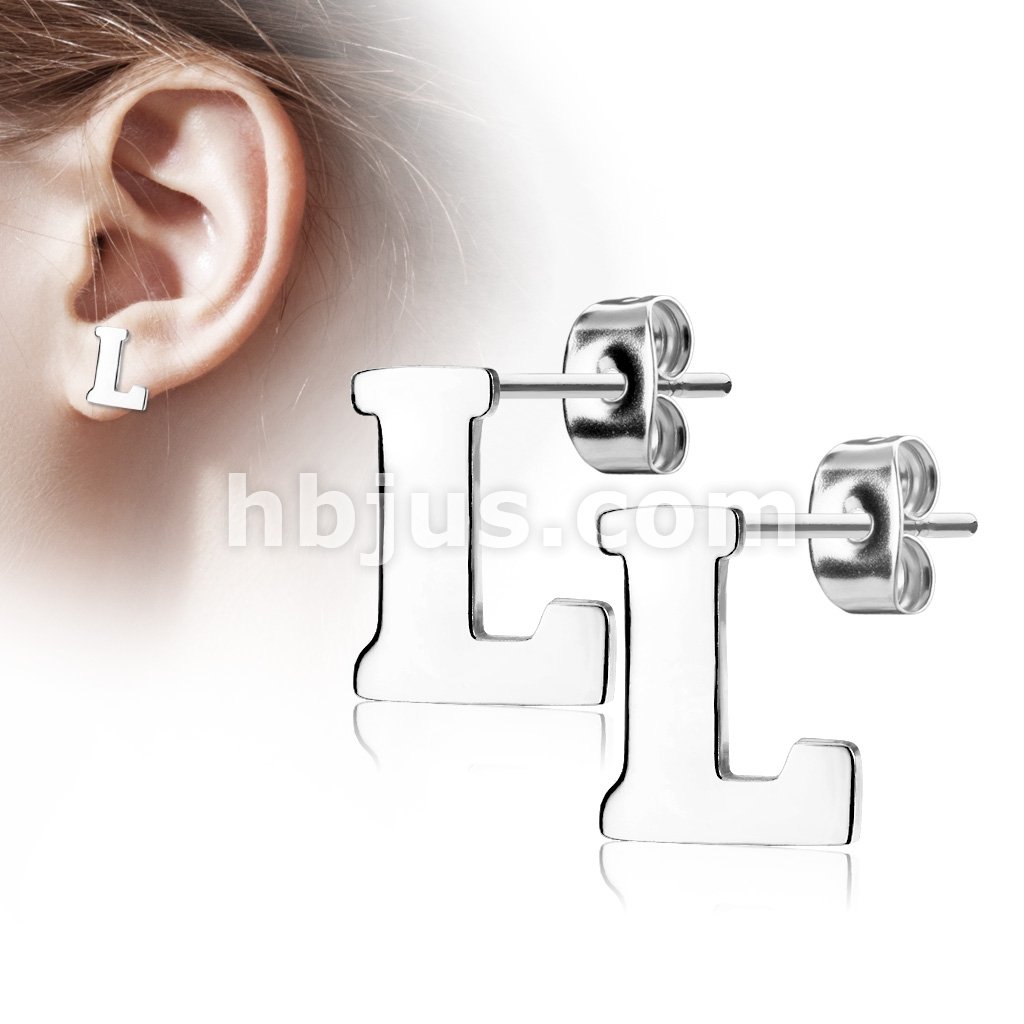 Pair of Alphabet Initial 316L Stainless Steel Earring Studs