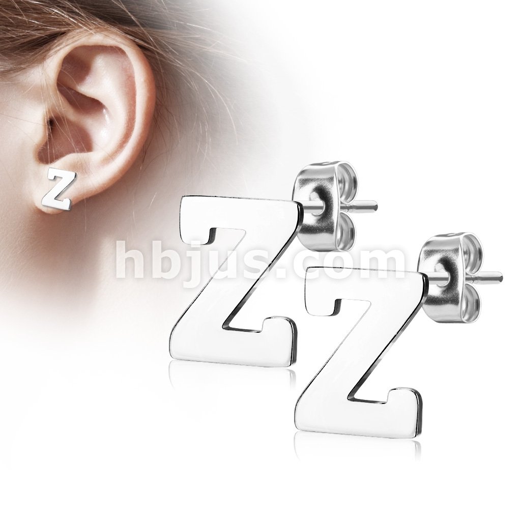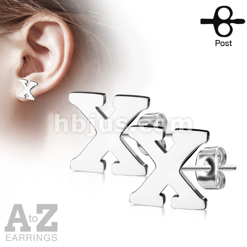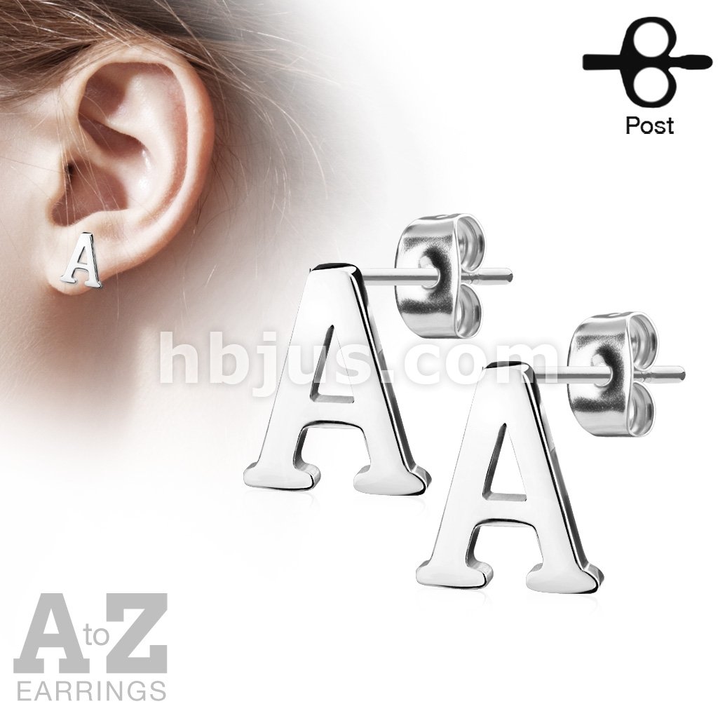 Pair of Alphabet Initial 316L Stainless Steel Earrings 52pc Pack (26 Alpahabet Pairs x 2)