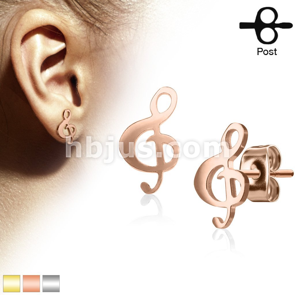 Pair of Hand Polished Music Cle 316L Stainless Steel Earring Studs