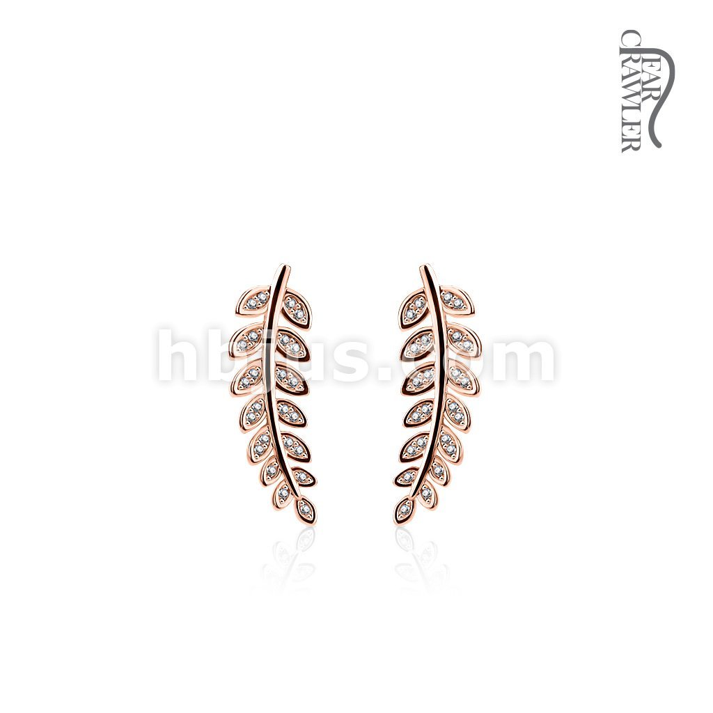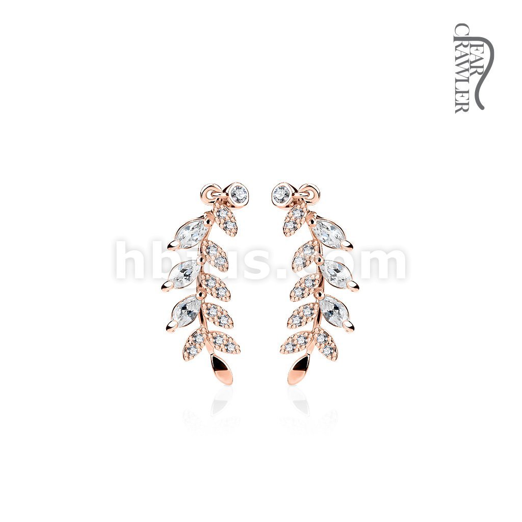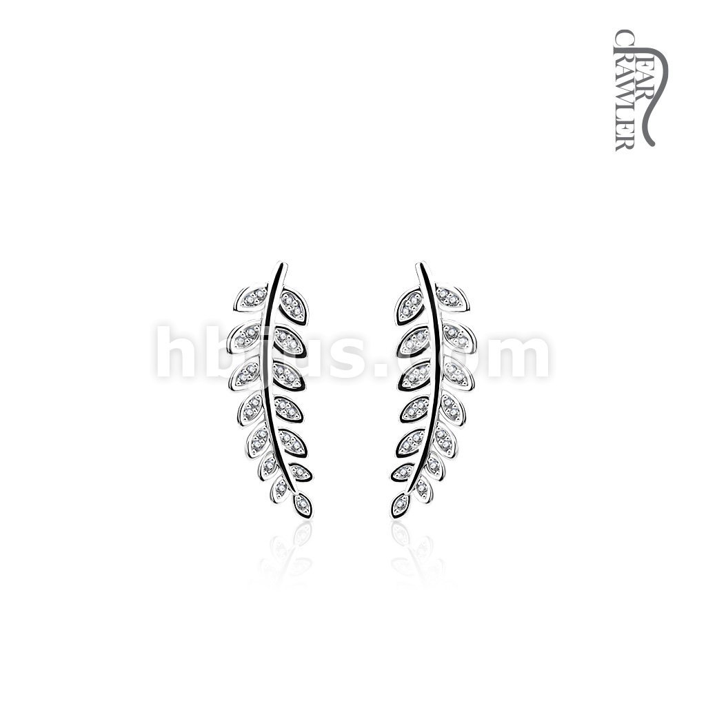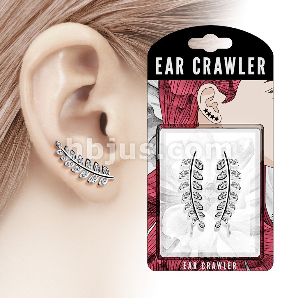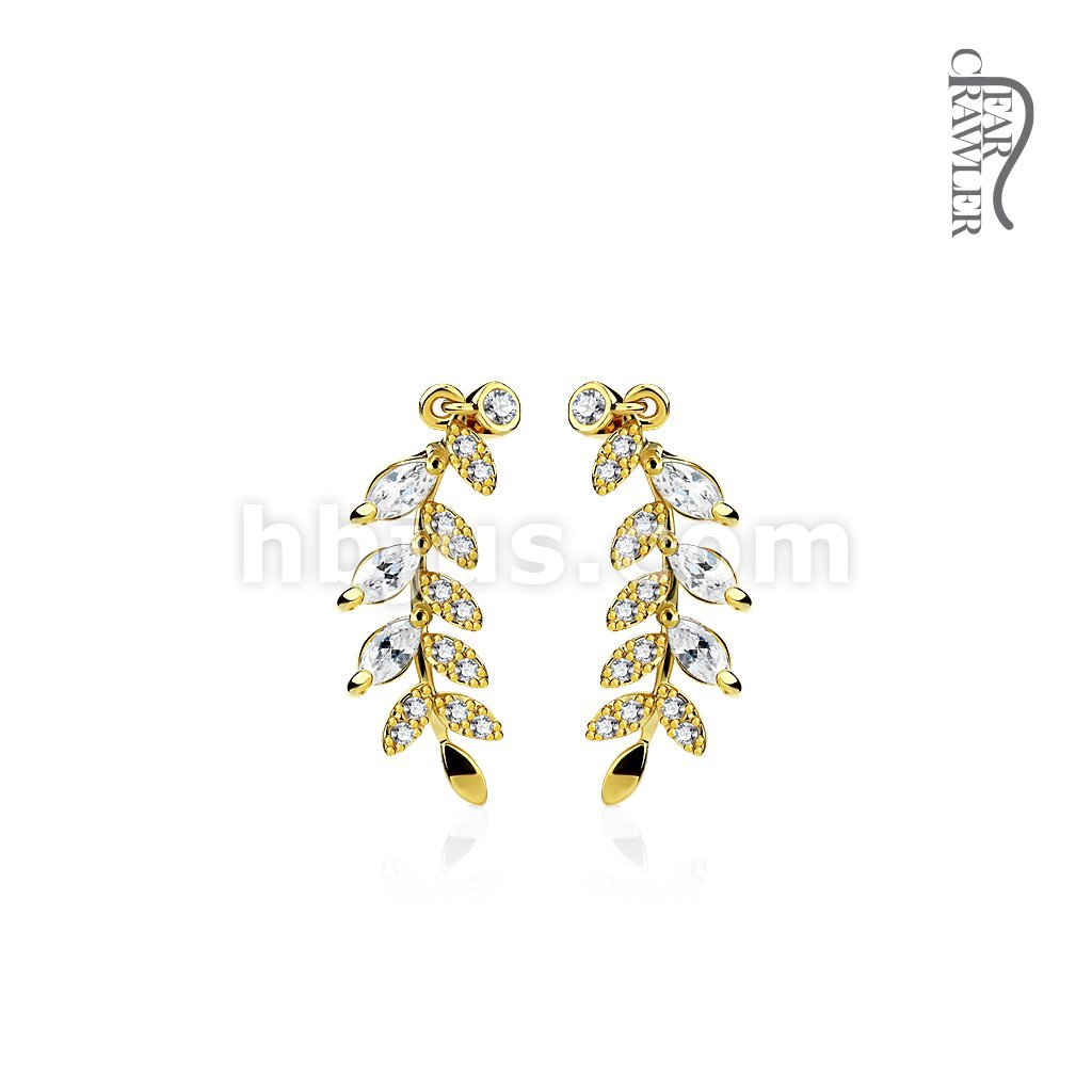Pair of CZ Paved Olive Leaf Prepacked Ear Crawler/Ear Climber