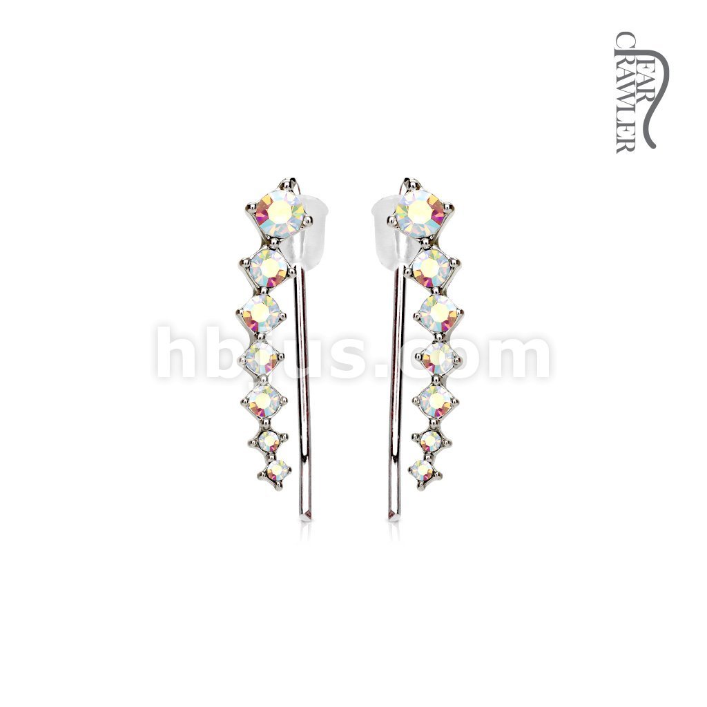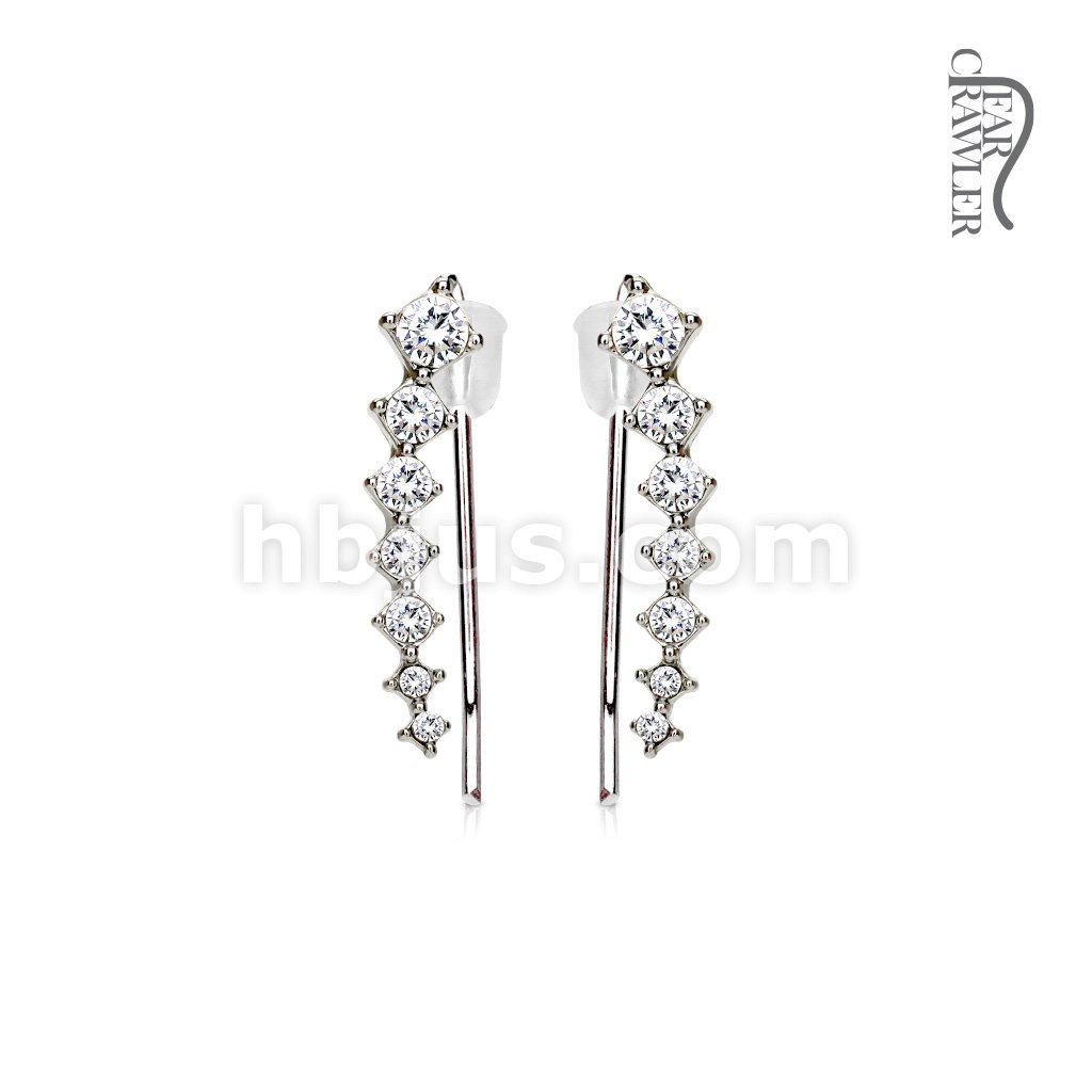 Pair of Seven Round Crystals Ascending Prepackaged Ear Crawler/Ear Climber