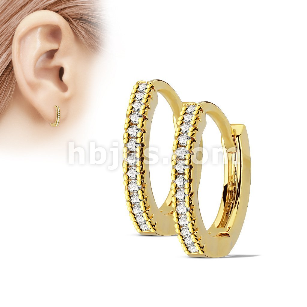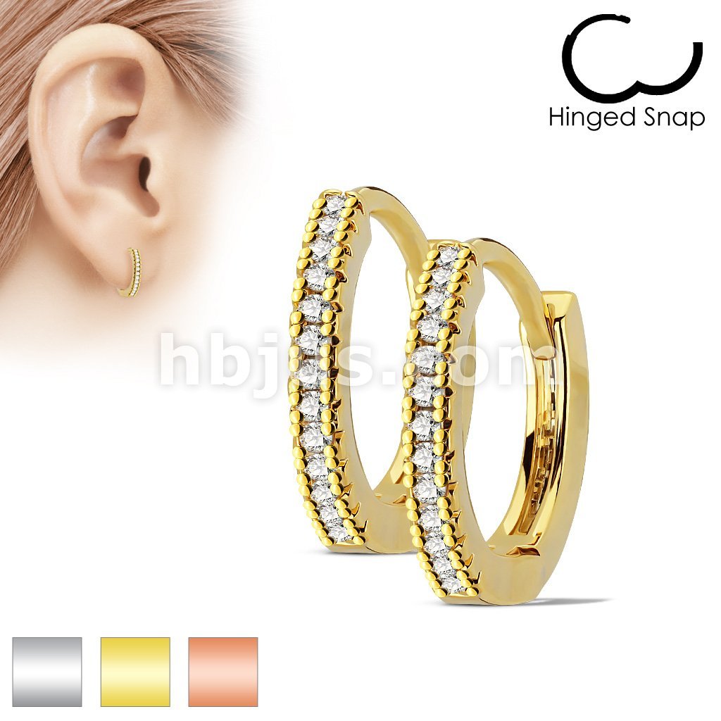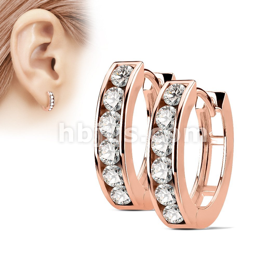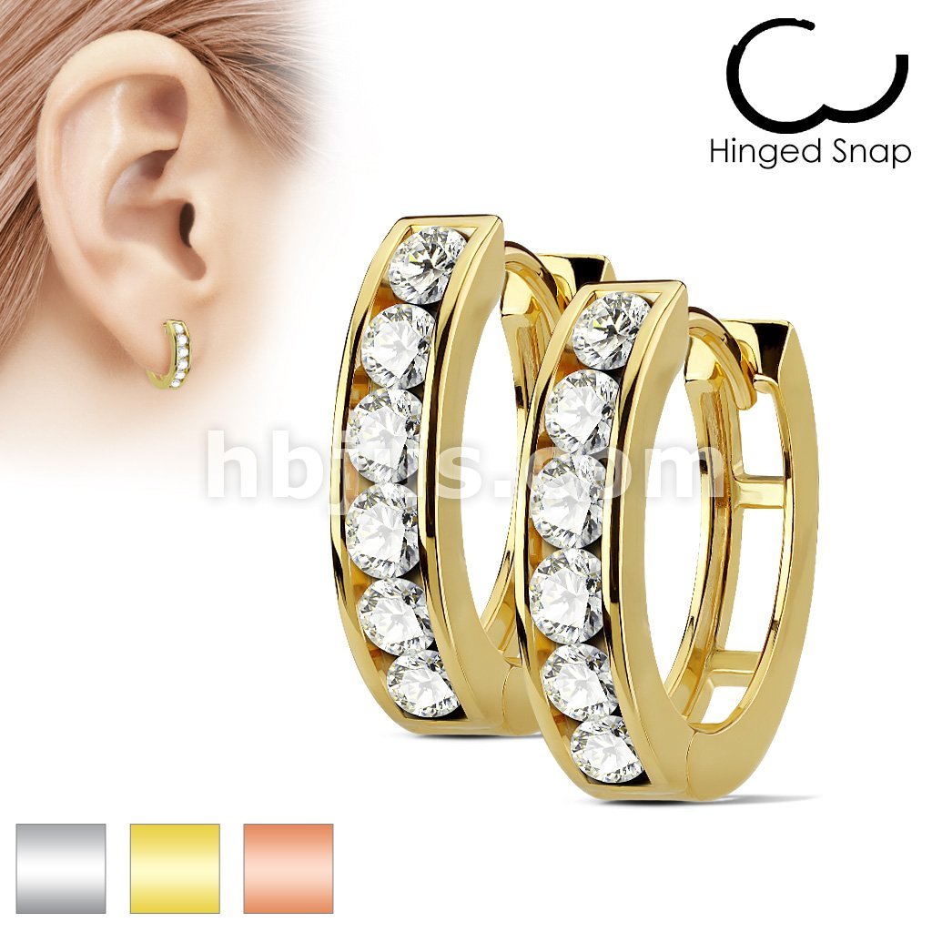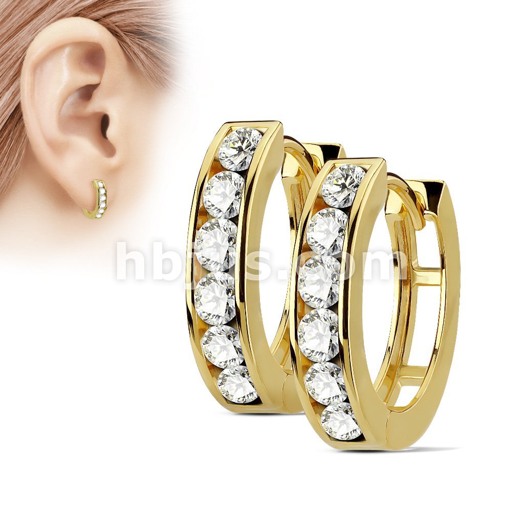 Pair of Channel Set Lined CZ 316L Surgical Steel Post Hoop Earrings