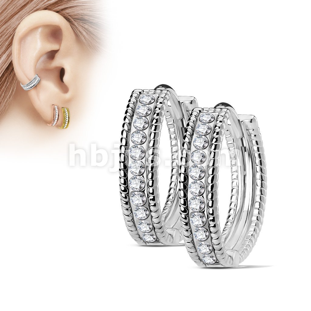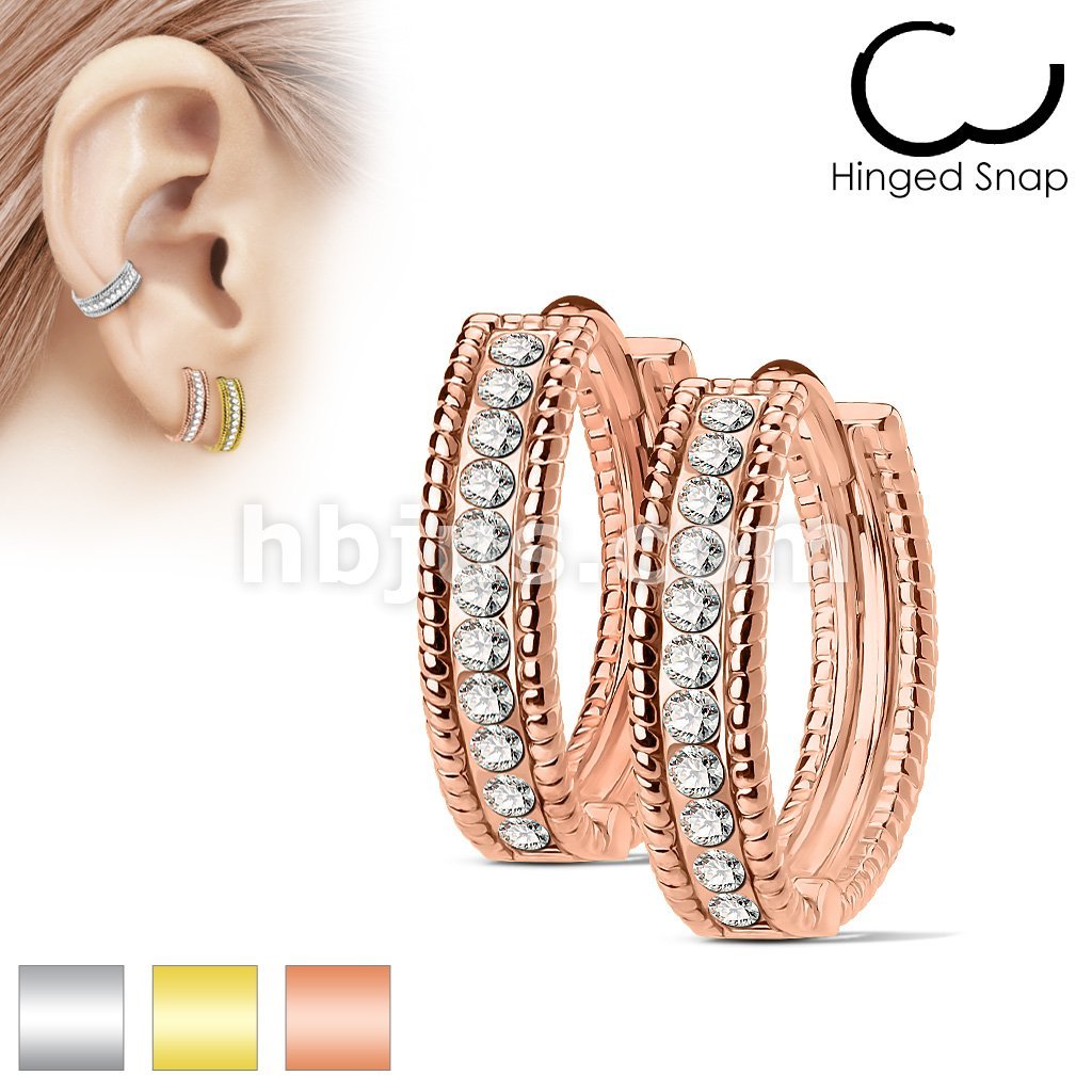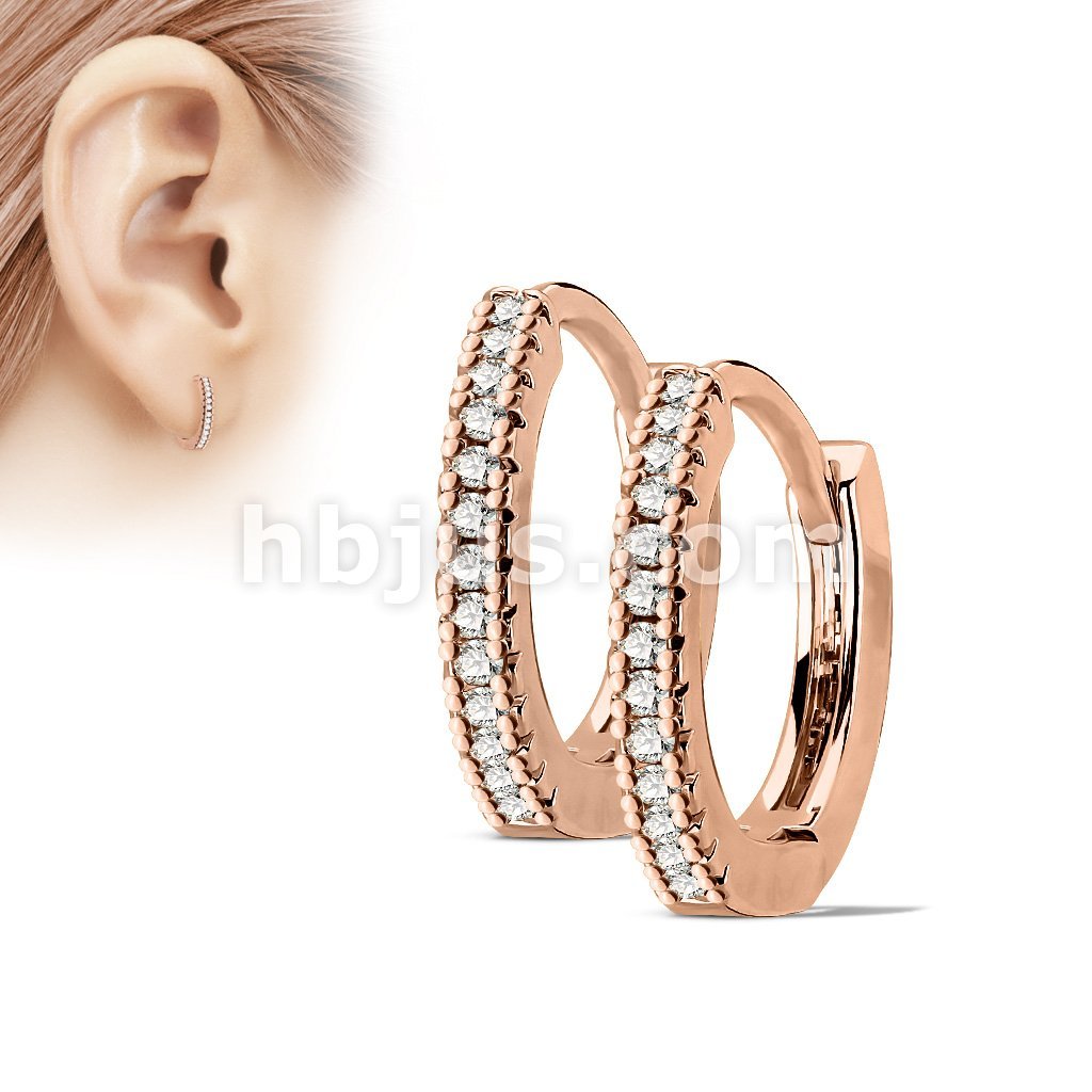Pair of Beaded Edges Dome Center with Channel Set Lined CZ 316L Surgical Steel Post Hoop Earrings
