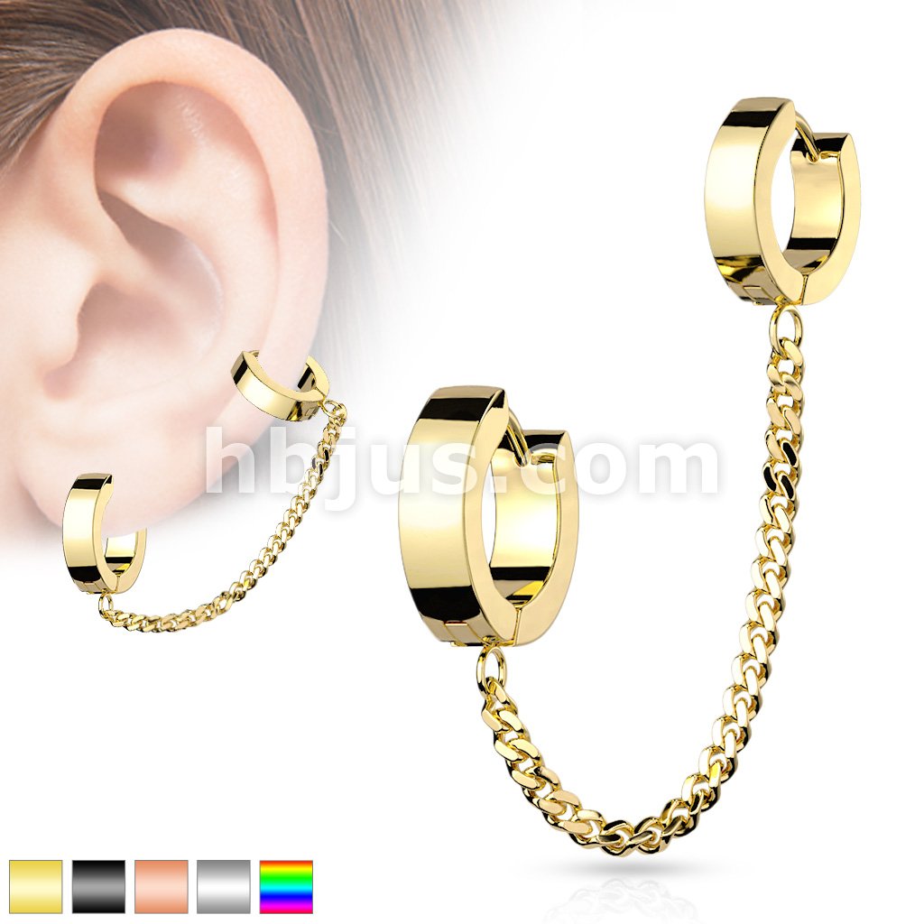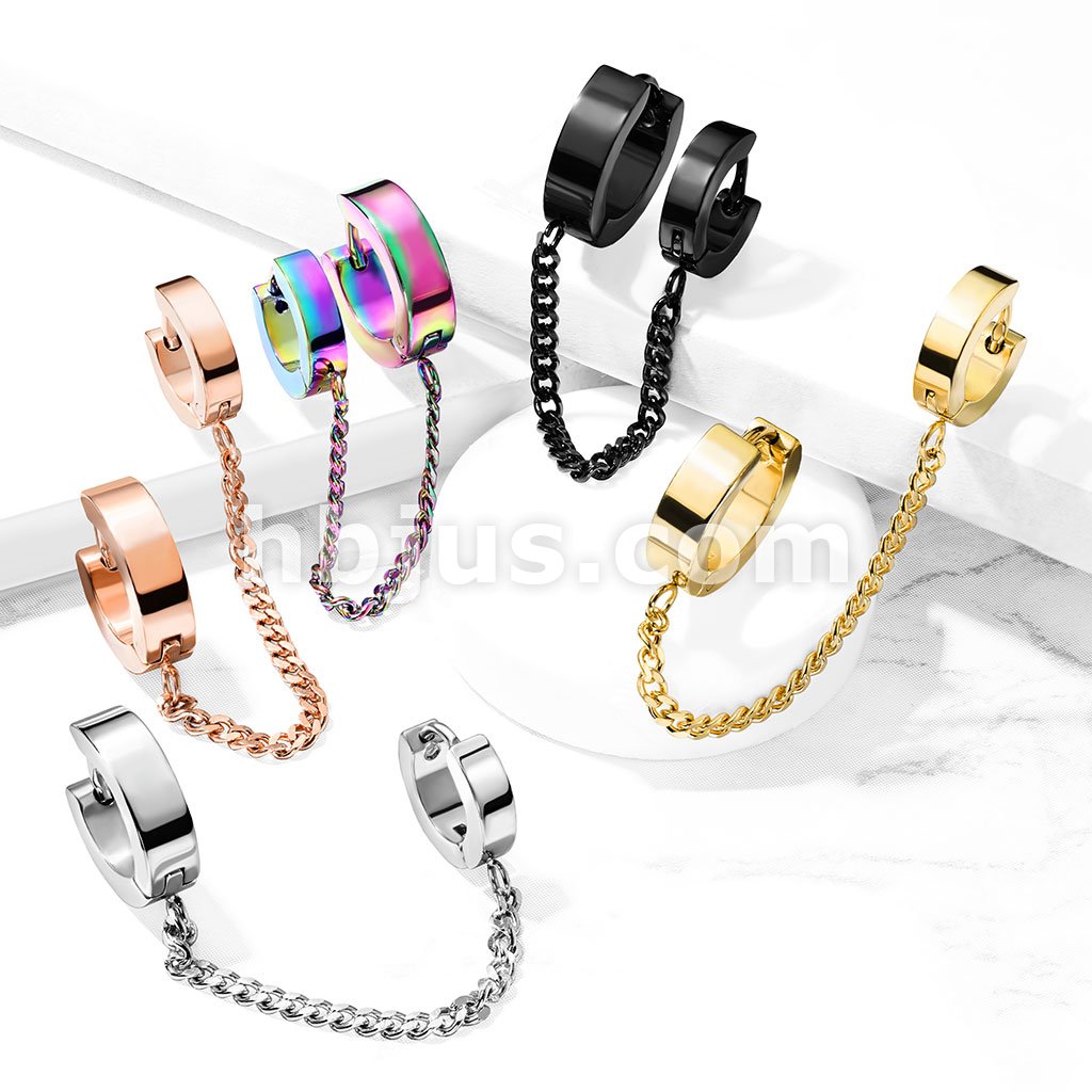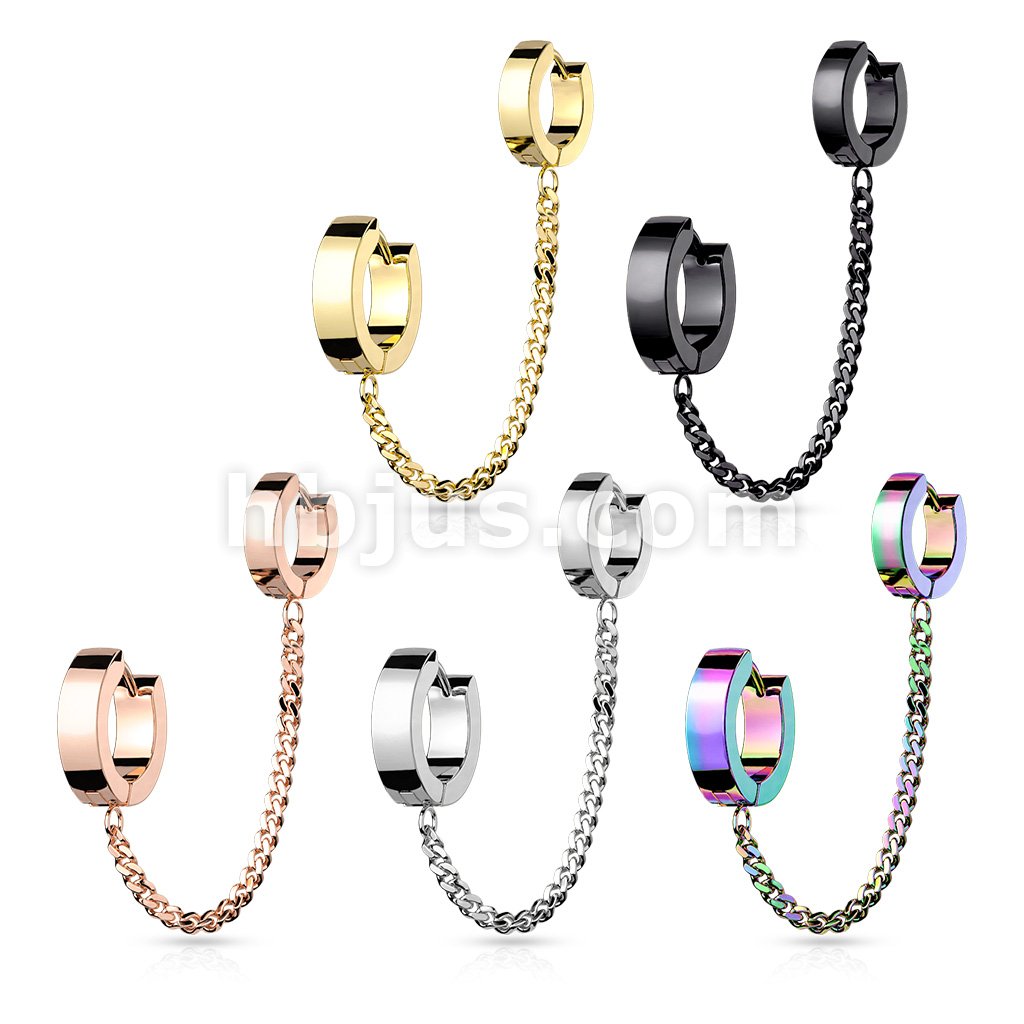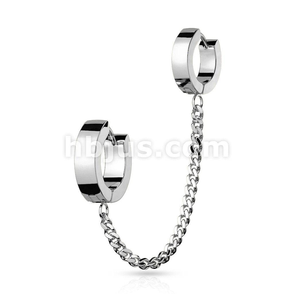 Chain Linked Double Round Clicker Hoops 316L Surgical Steel Earrings
