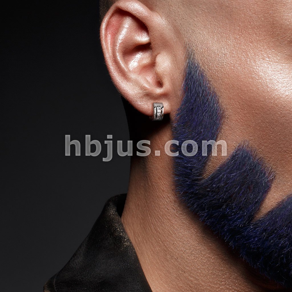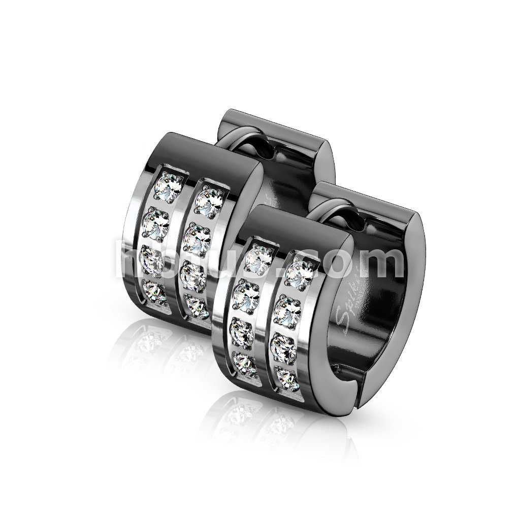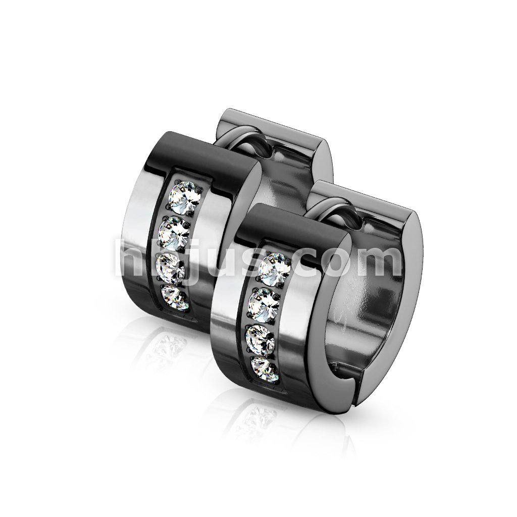 Pair of 316L Stainless Steel Black Hinged Hoop Wide Earrings with Dia-Cut and Grooved Center