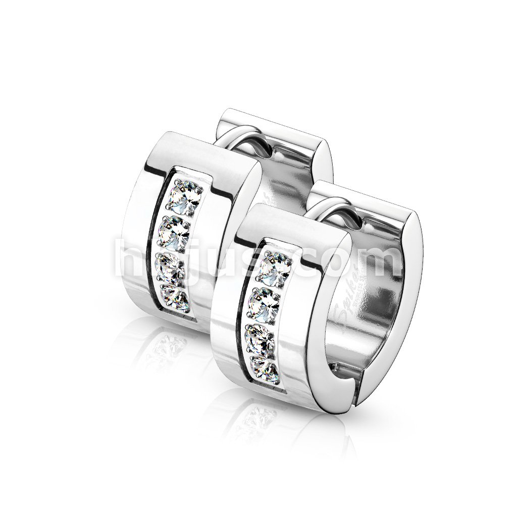 Pair of 4 CNC Set Clear CZ Stainless Steel Hinge Action Hoop Earrings