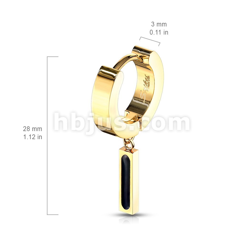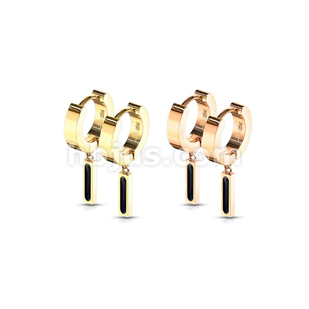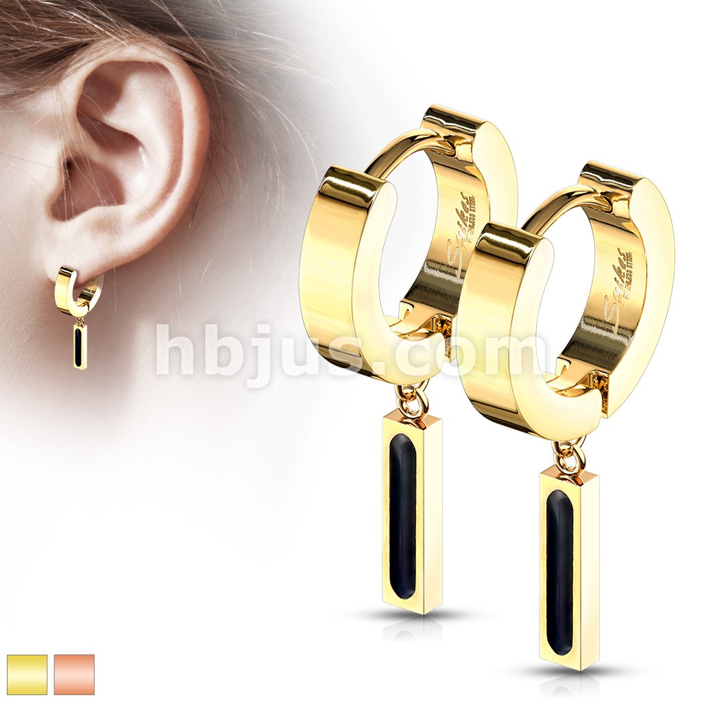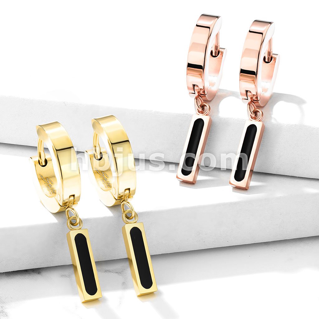 Pair of 316L Stainless Steel Hinged Hoop Earring and Rectangular Bar with Black IP Center Dangle
