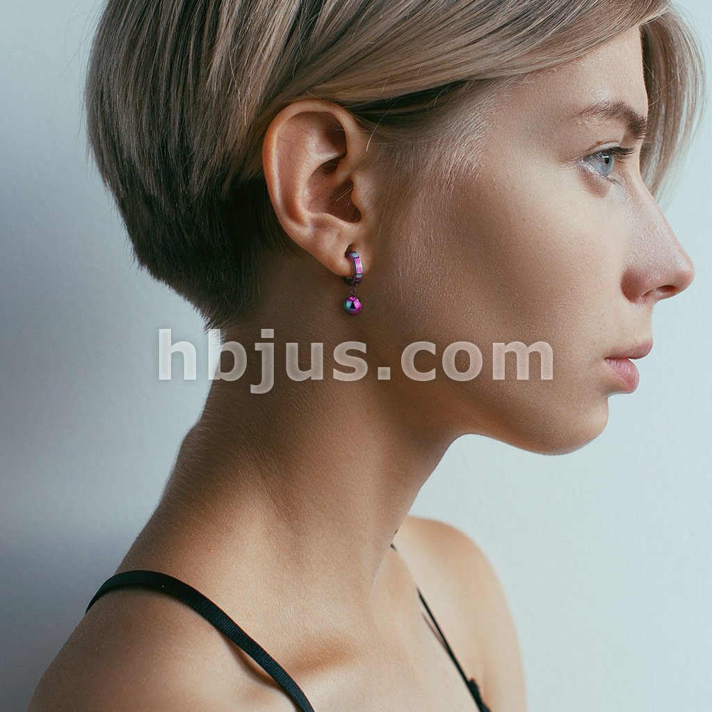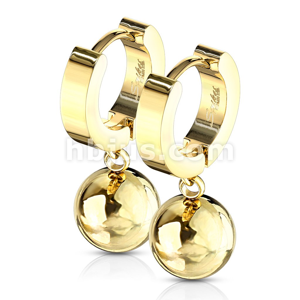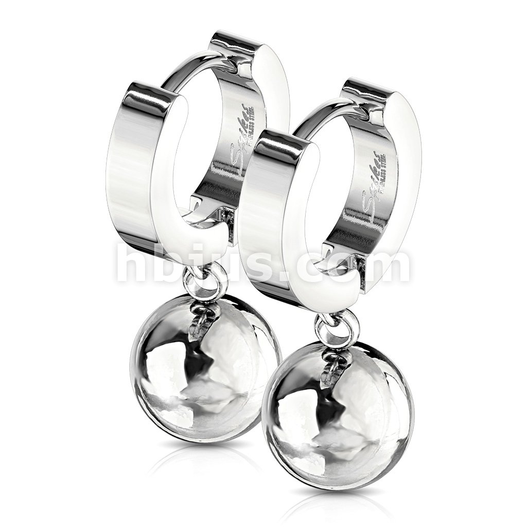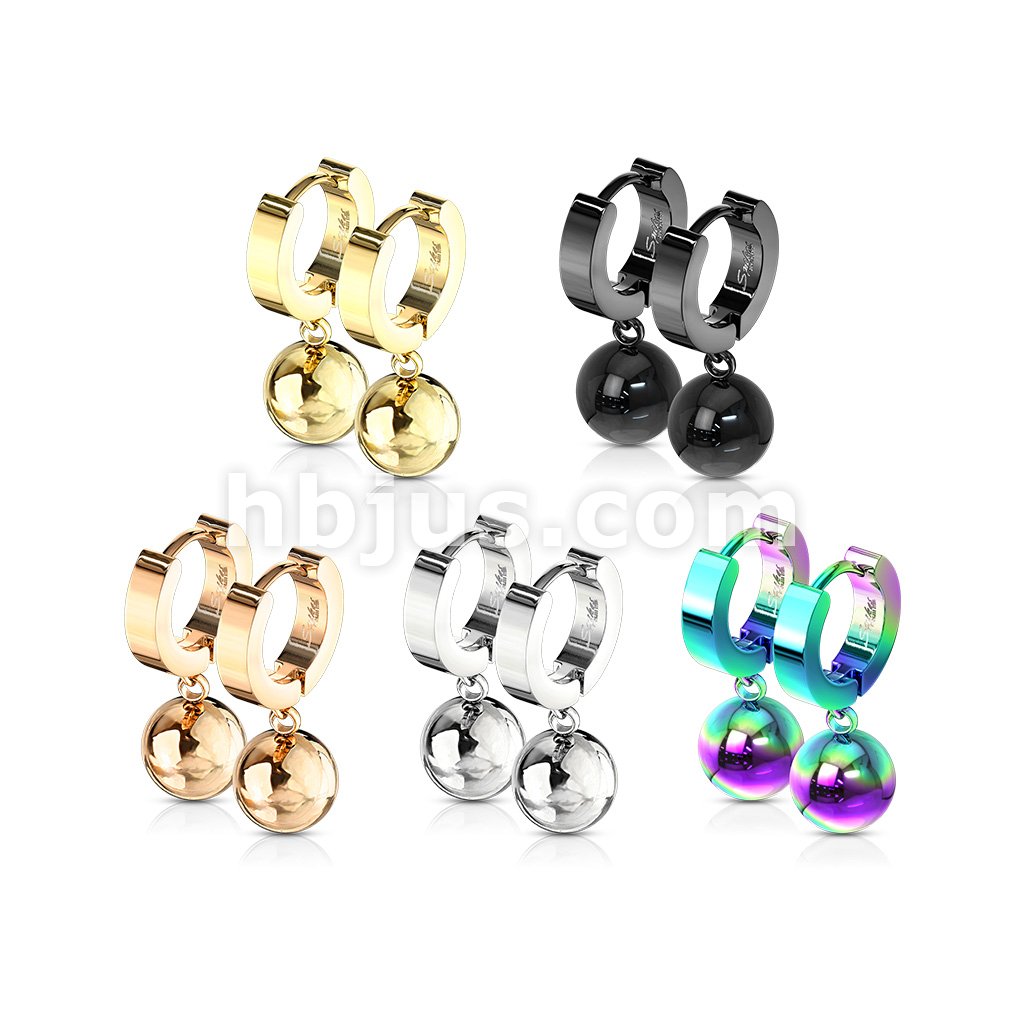 Pair of 316L Stainless Steel Hinged Hoop Earring with Ball Dangle