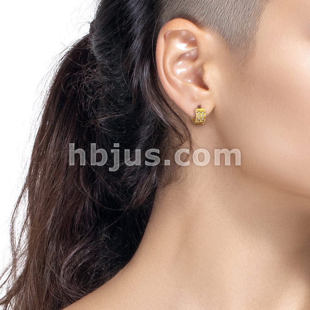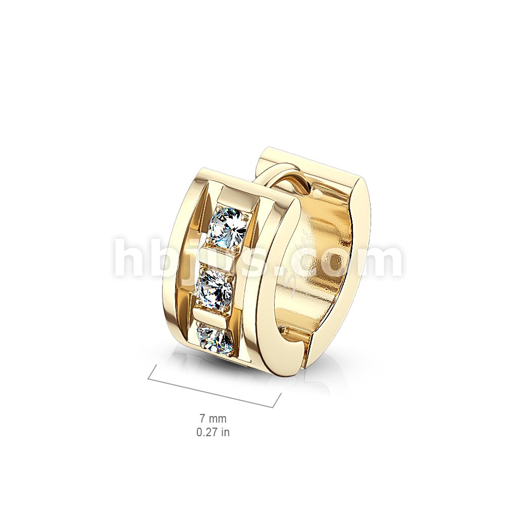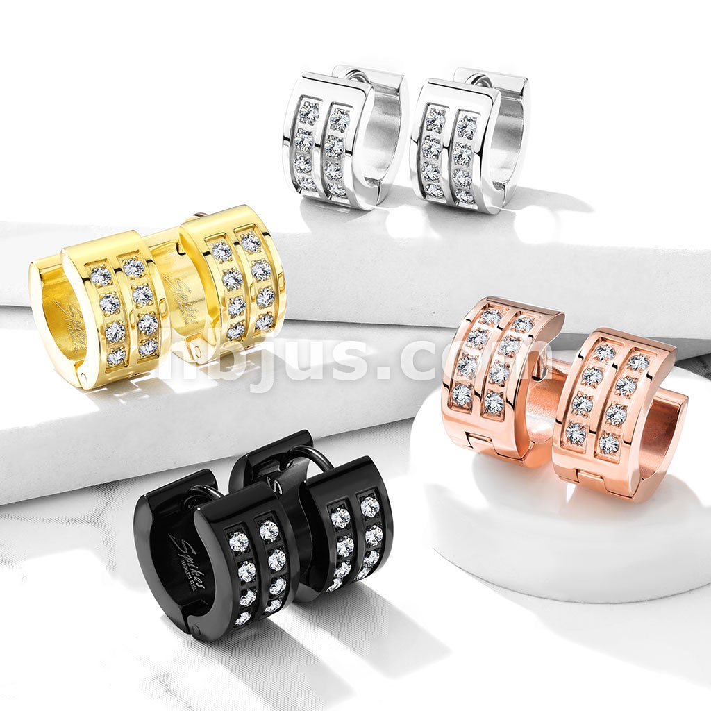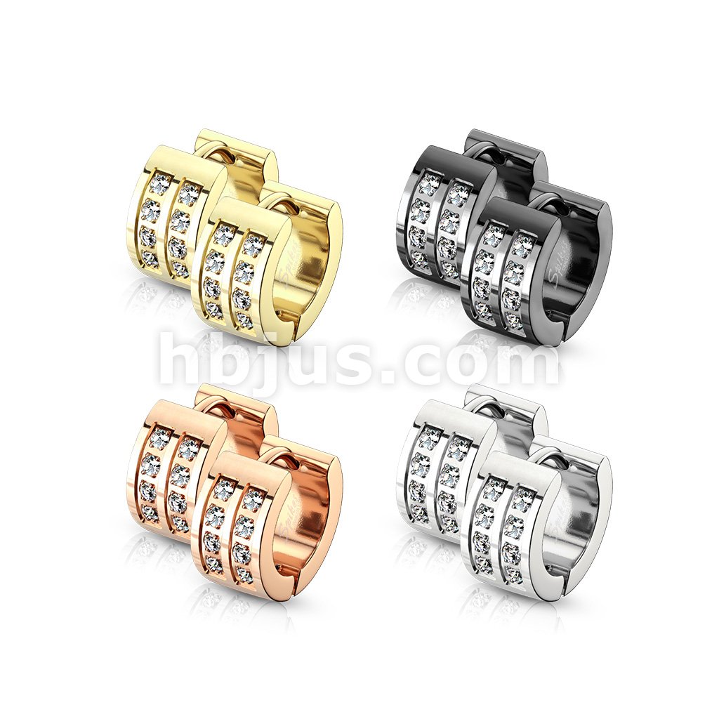 Pair of 3 CNC Set Clear CZ 316LStainless Steel Hinge Action Hoop Earrings