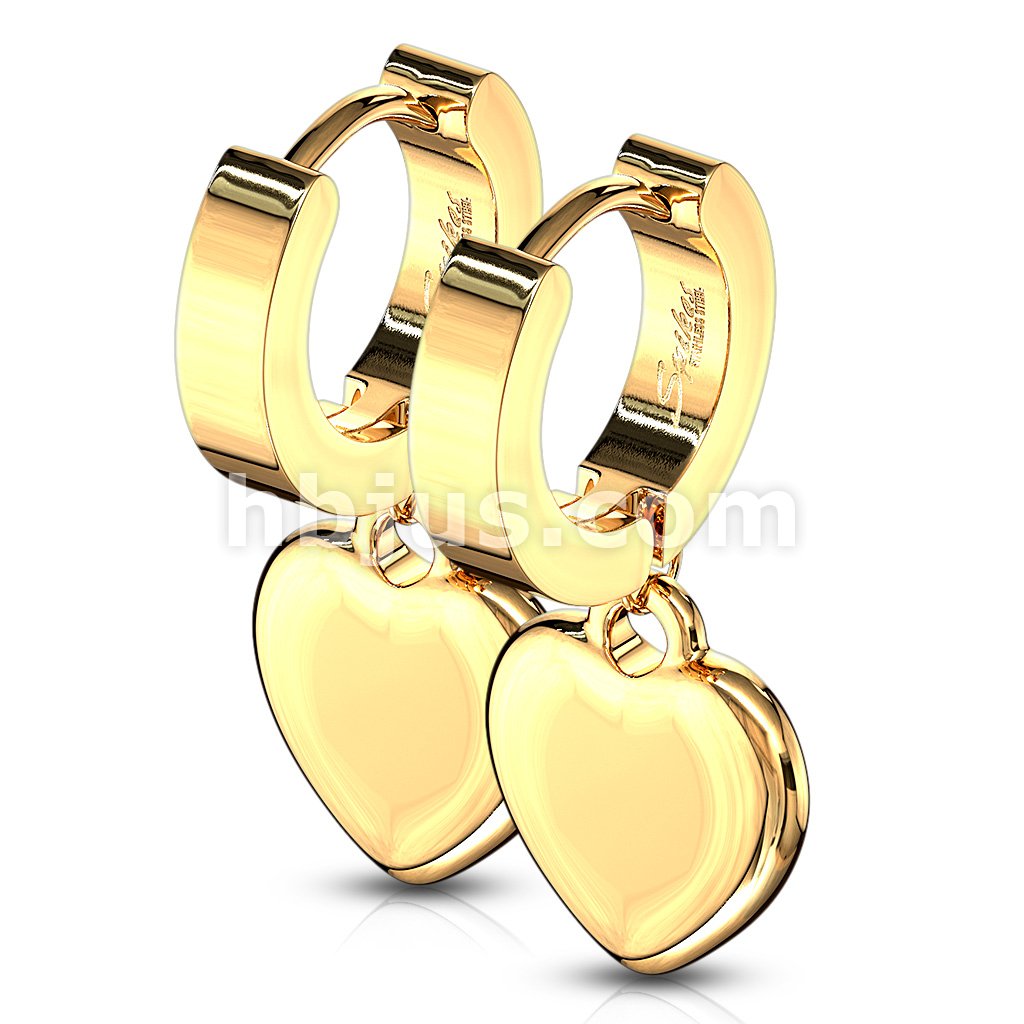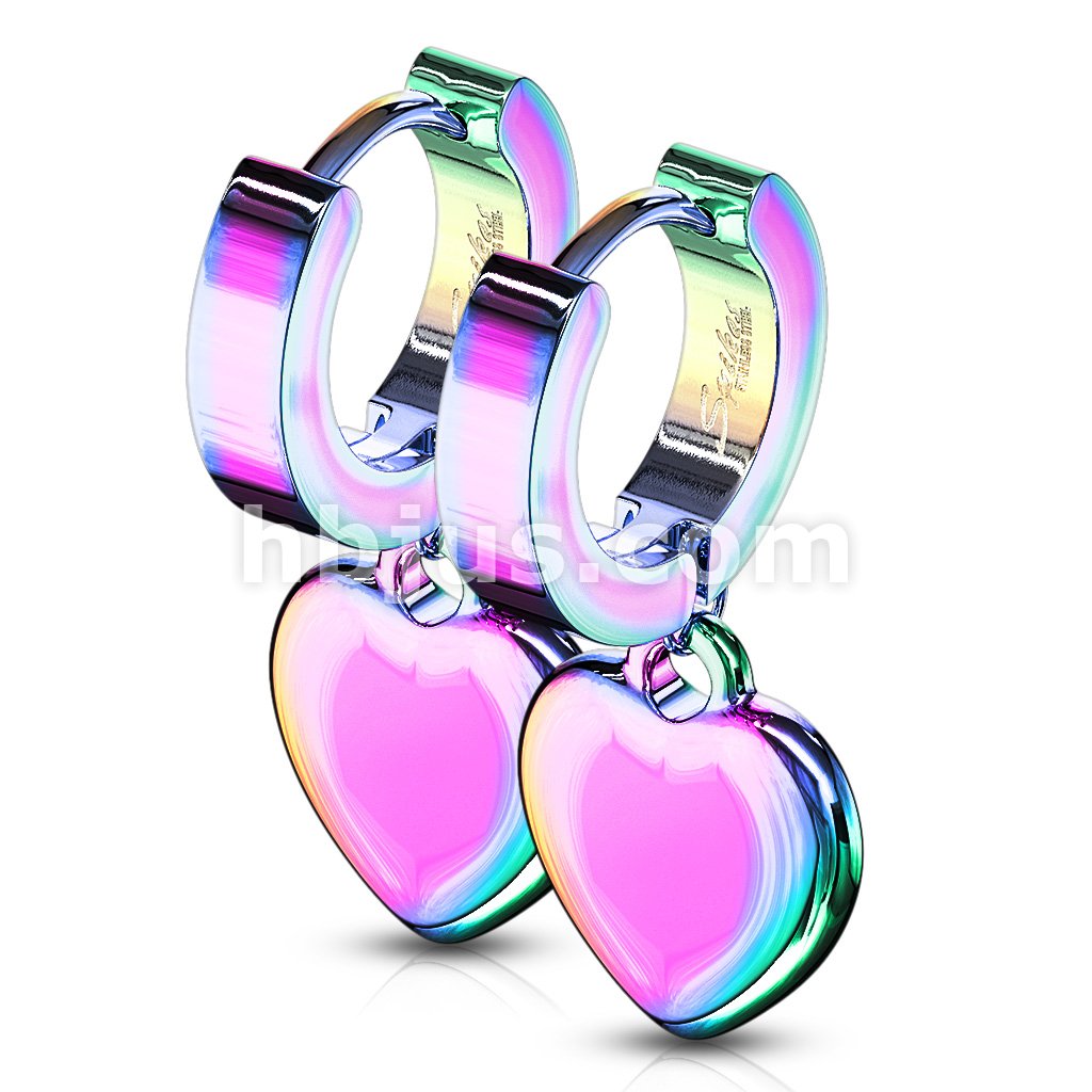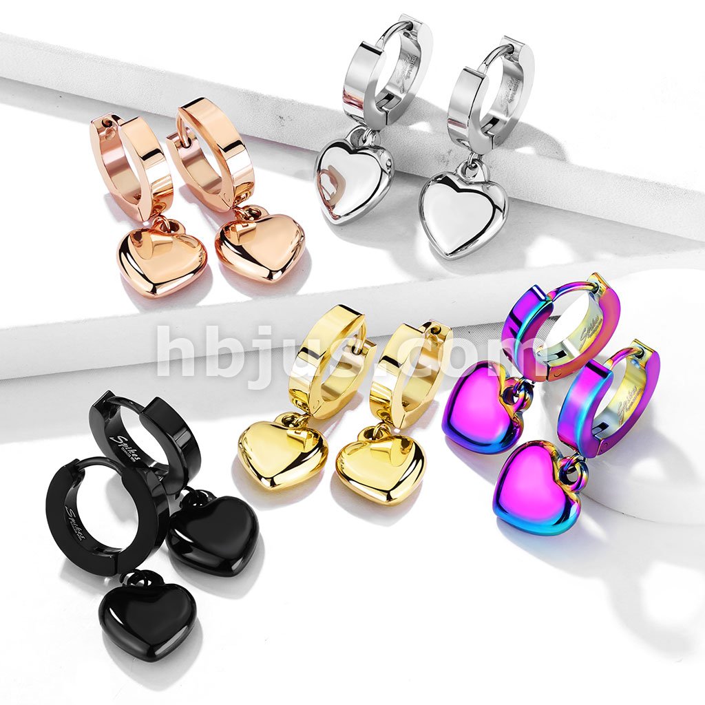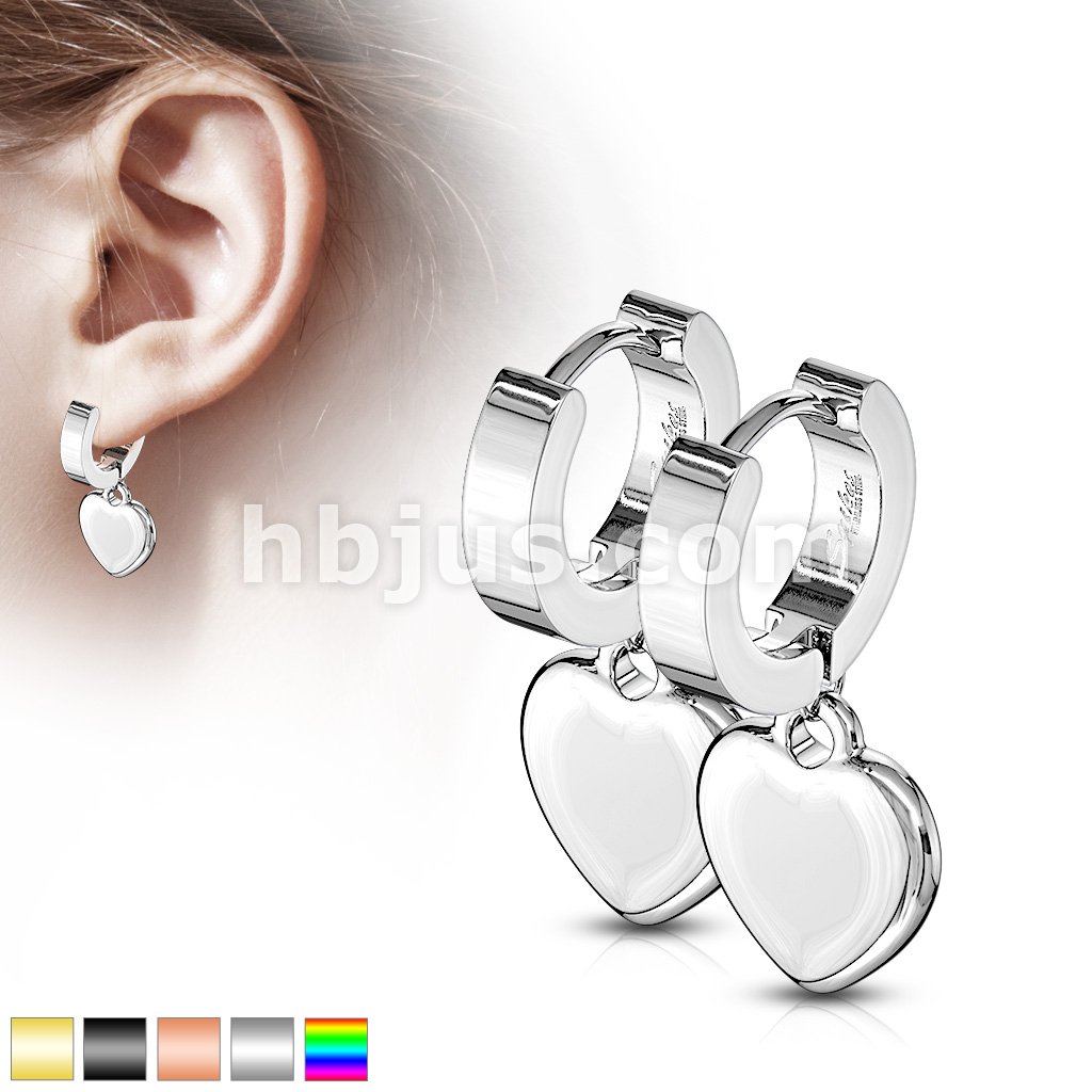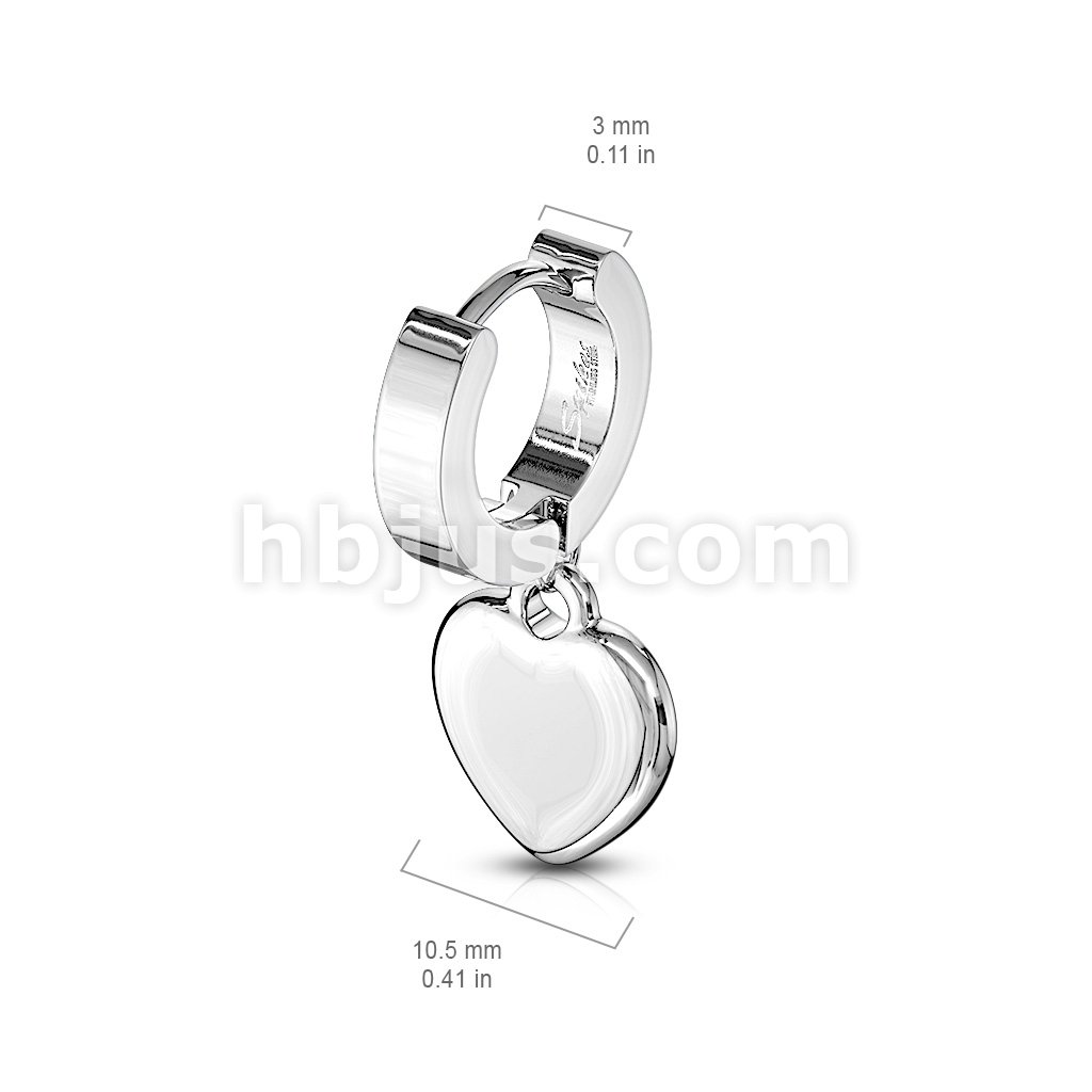 Pair of 316L Stainless Steel Hinged Hoop Earring with Heart Dangle