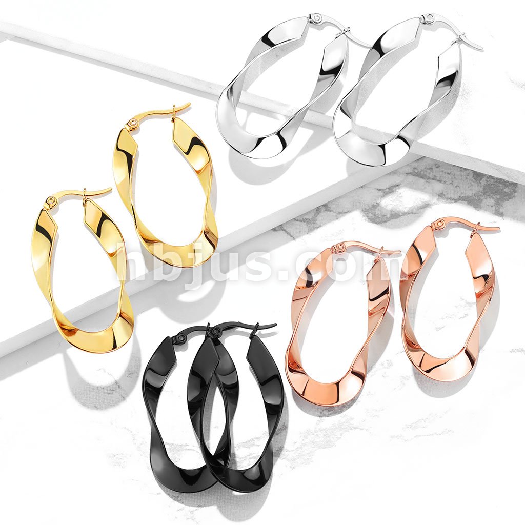 Pair of 316LStainless Steel Twisted Oval Hoop Earrings