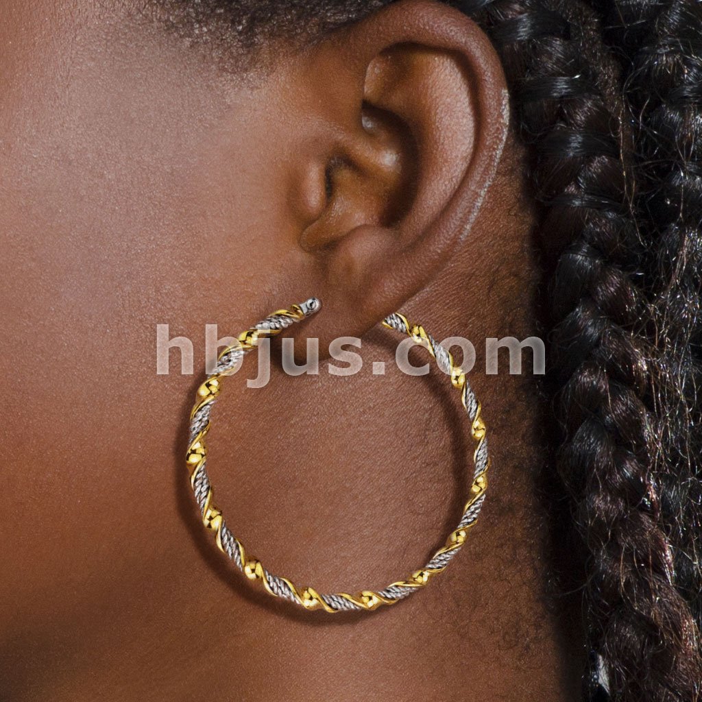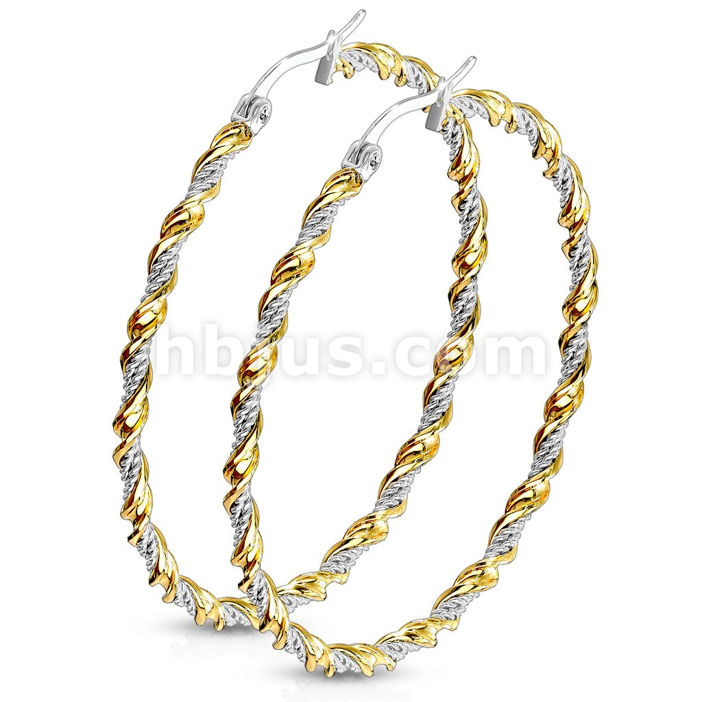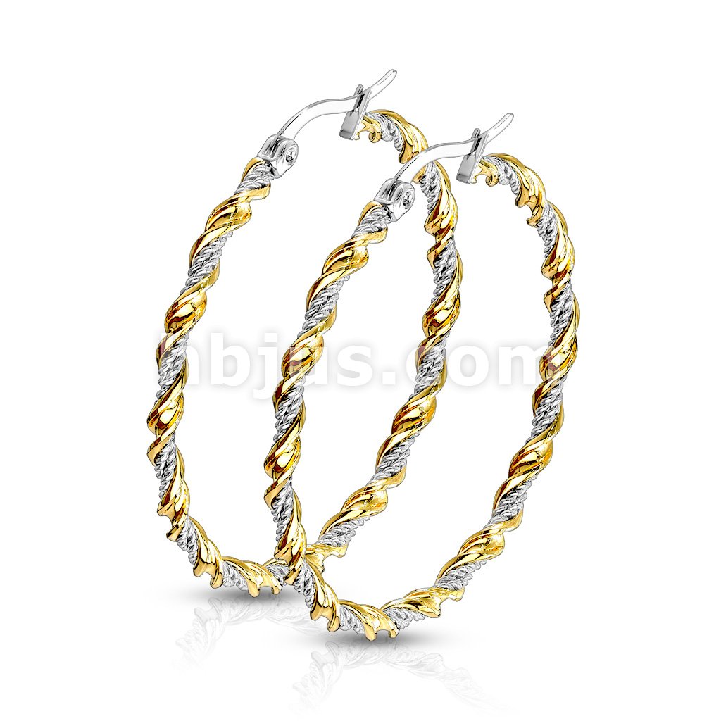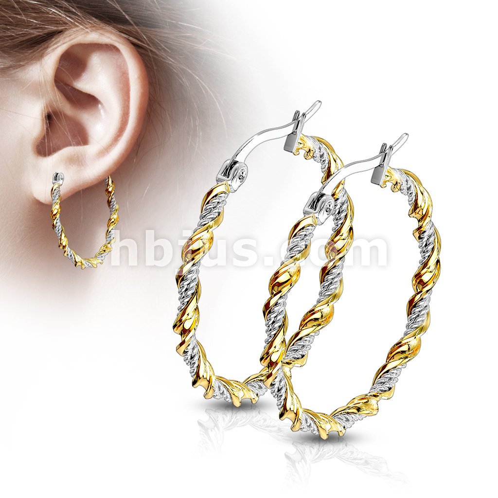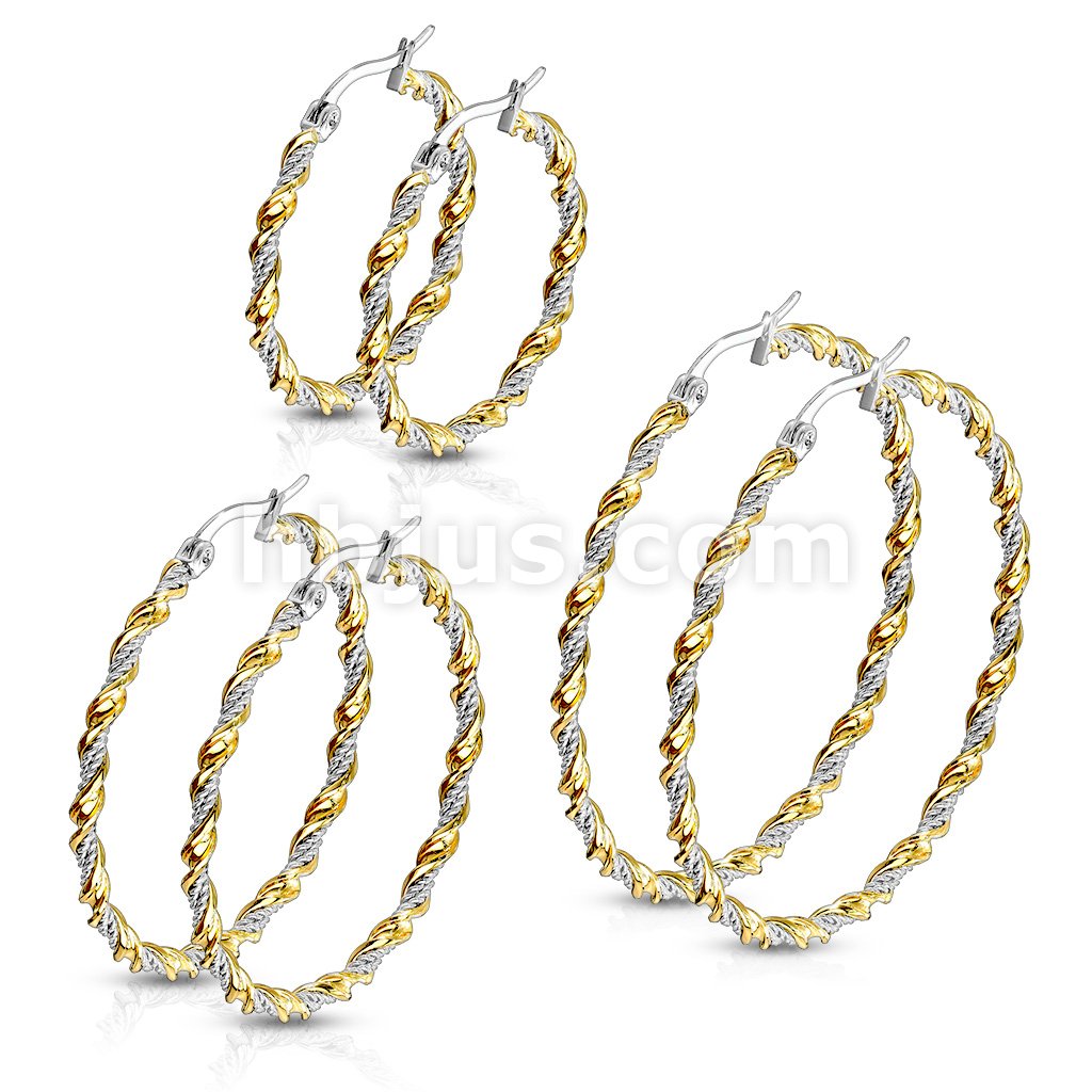 Pair of Braided 316LStainless Steel and Gold IP Twisted Hoop Earrings