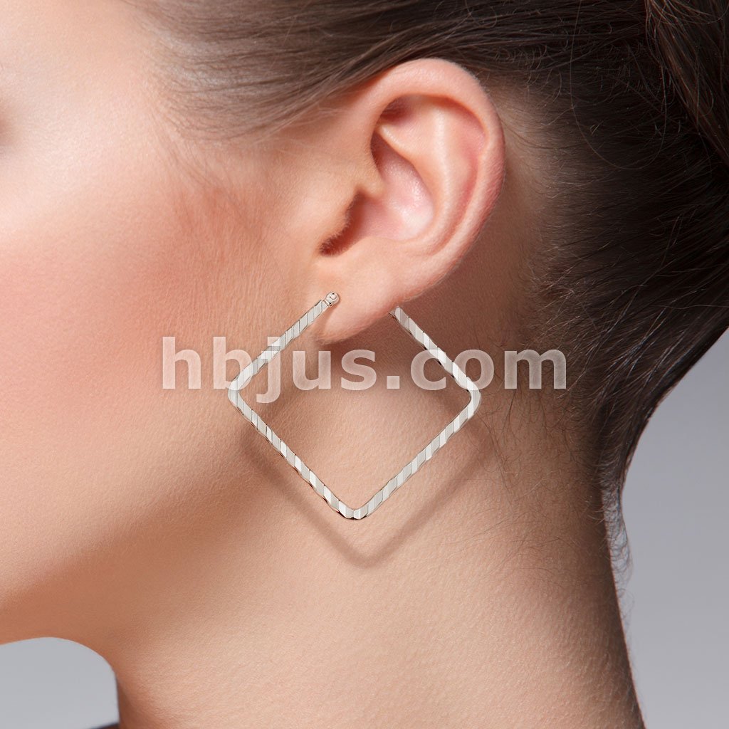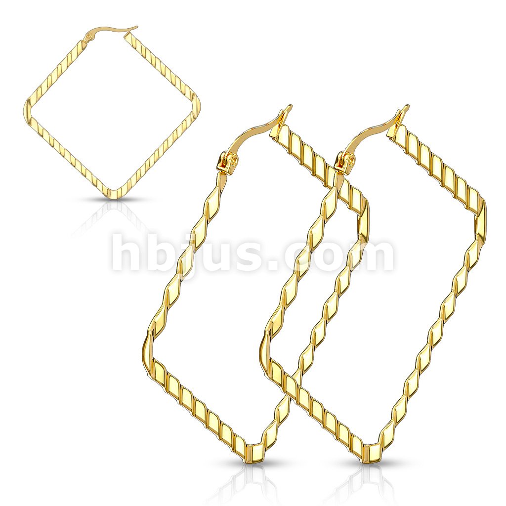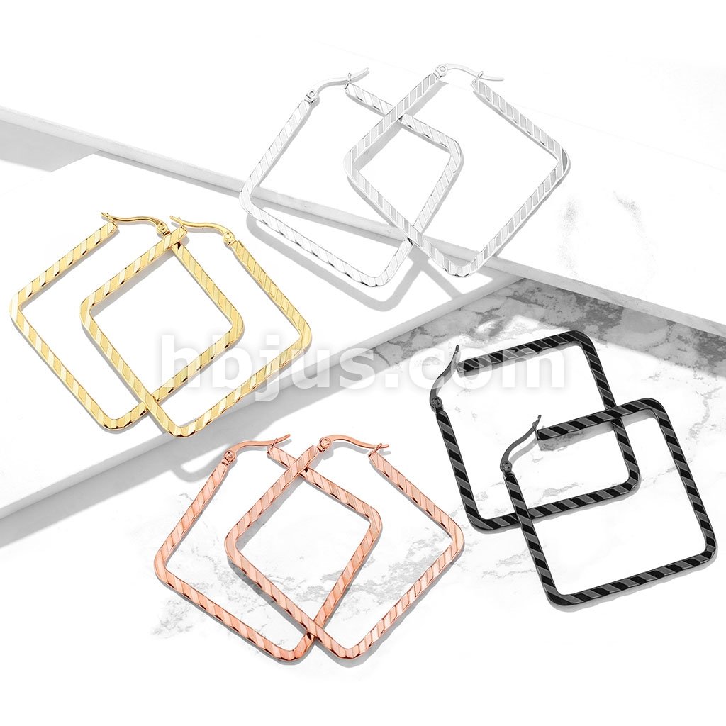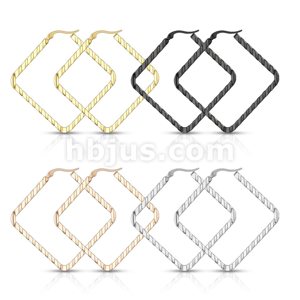 Pair of Wave Pattern Square Diamond Shaped 316LStainless Steel Hoop Earrings