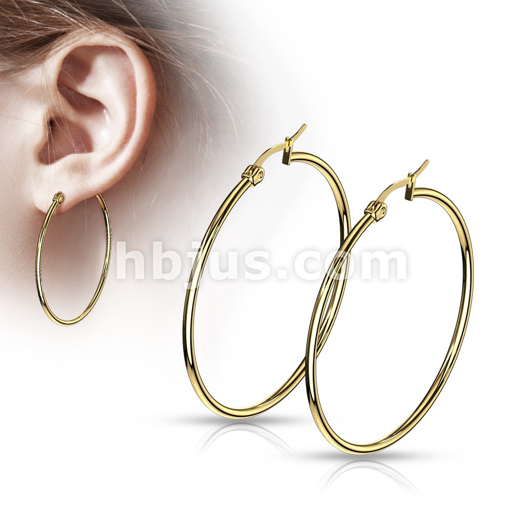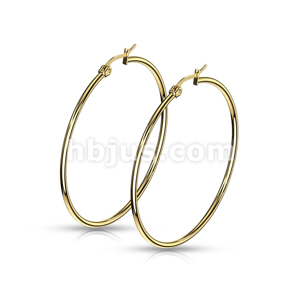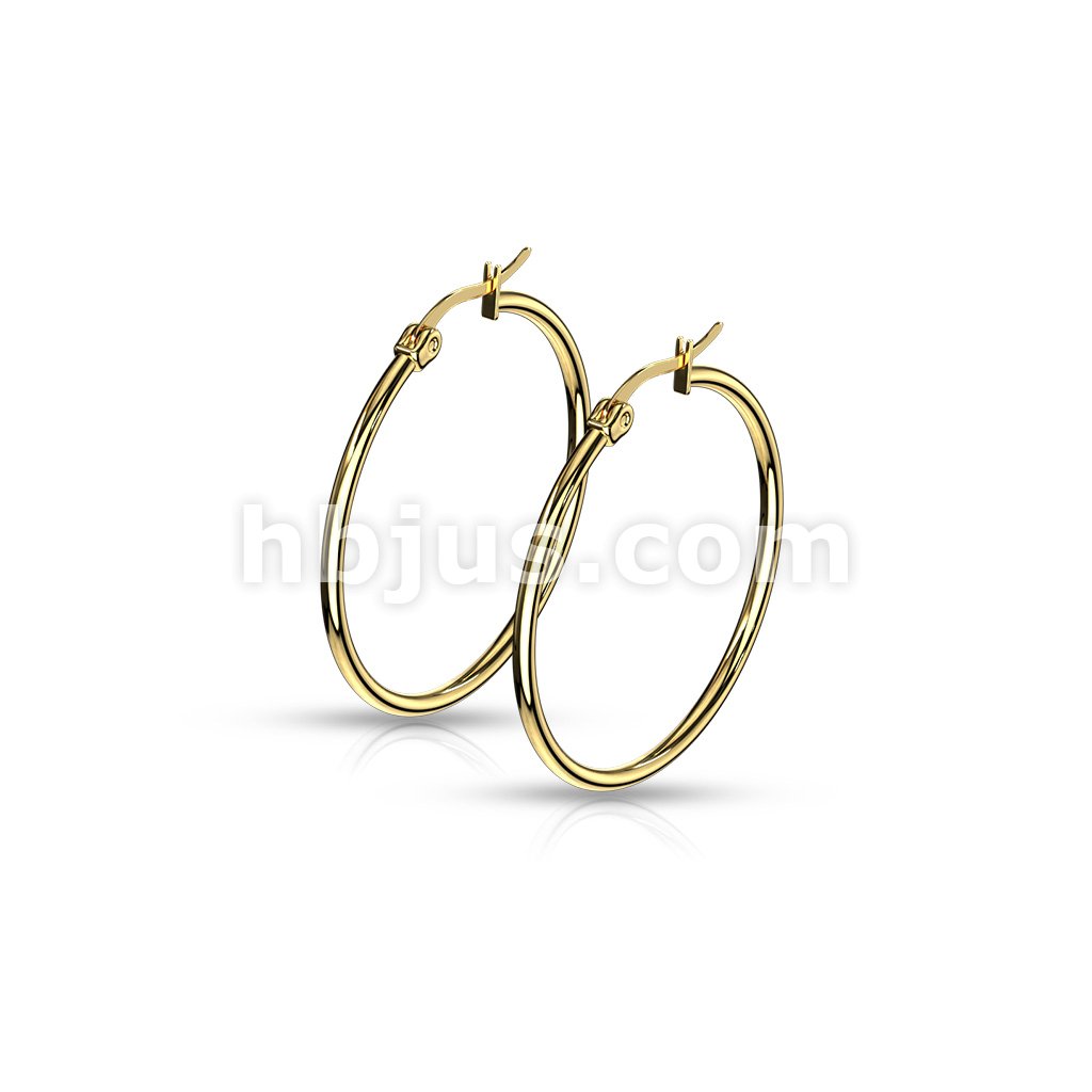 Pair of Gold IP 316L Stainless Steel Round Hoop Earrings