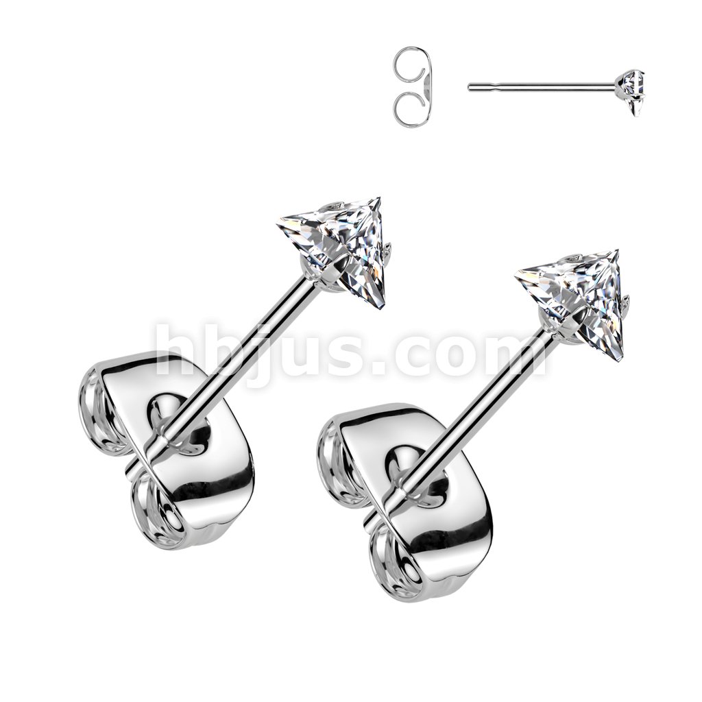 Pair of 316L Surgical Stainless Steel Stud Earrings With Prong Set Triangle CZ