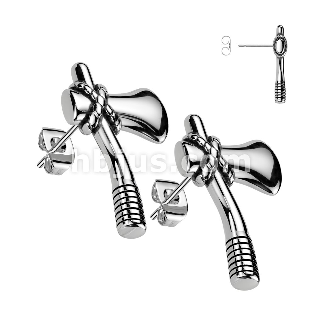 Pair of 316L Stainless Steel Axe Earrings