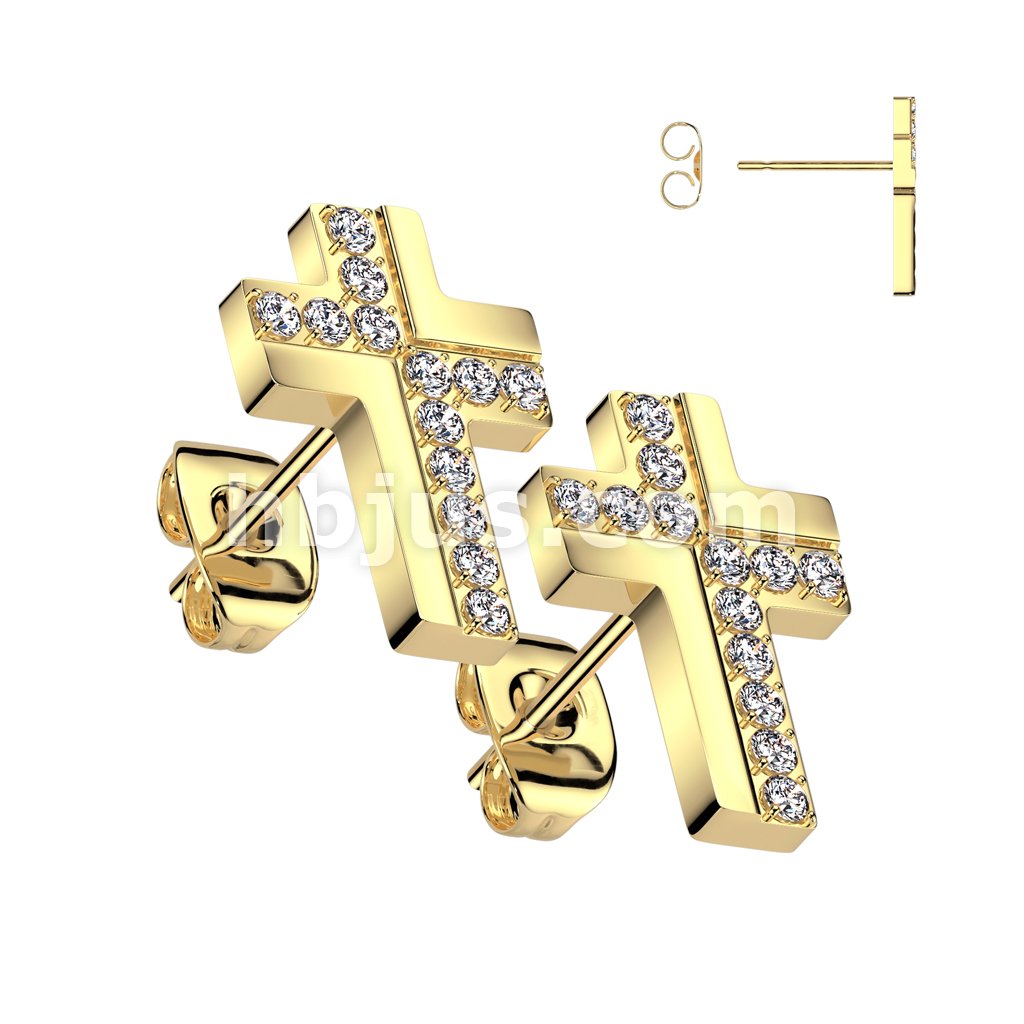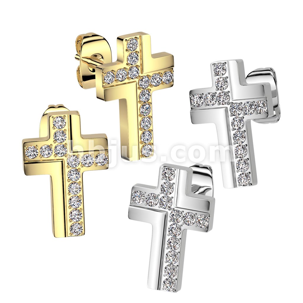 Pair of 316L Surgical Stainless CNC CZ Cross Stud Earrings