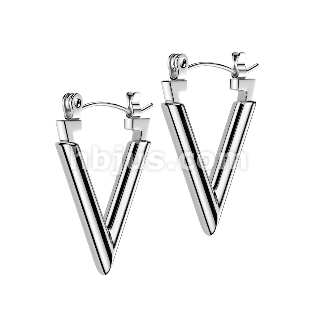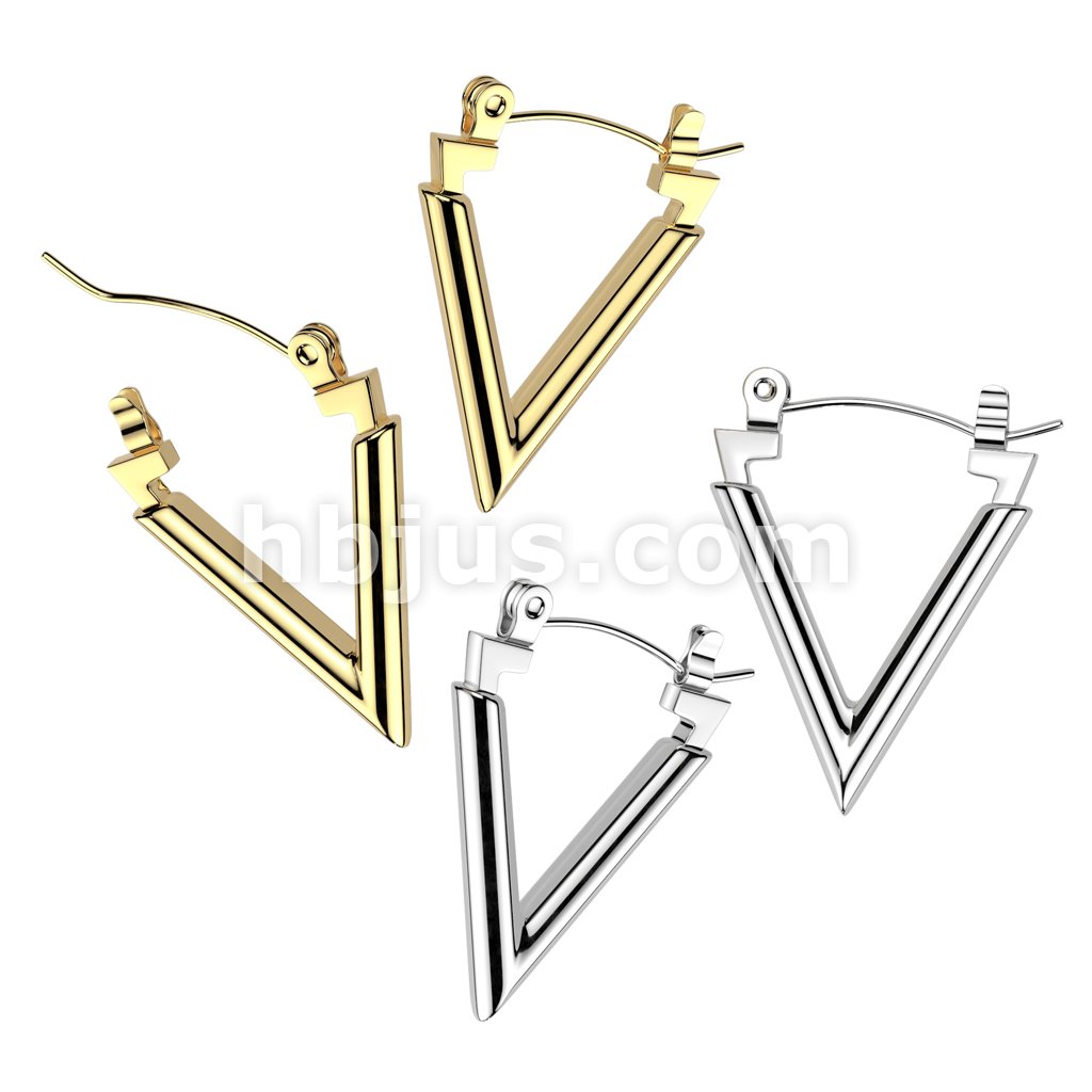 Pair of 316L Stainless Steel Chevron Hoop Earrings