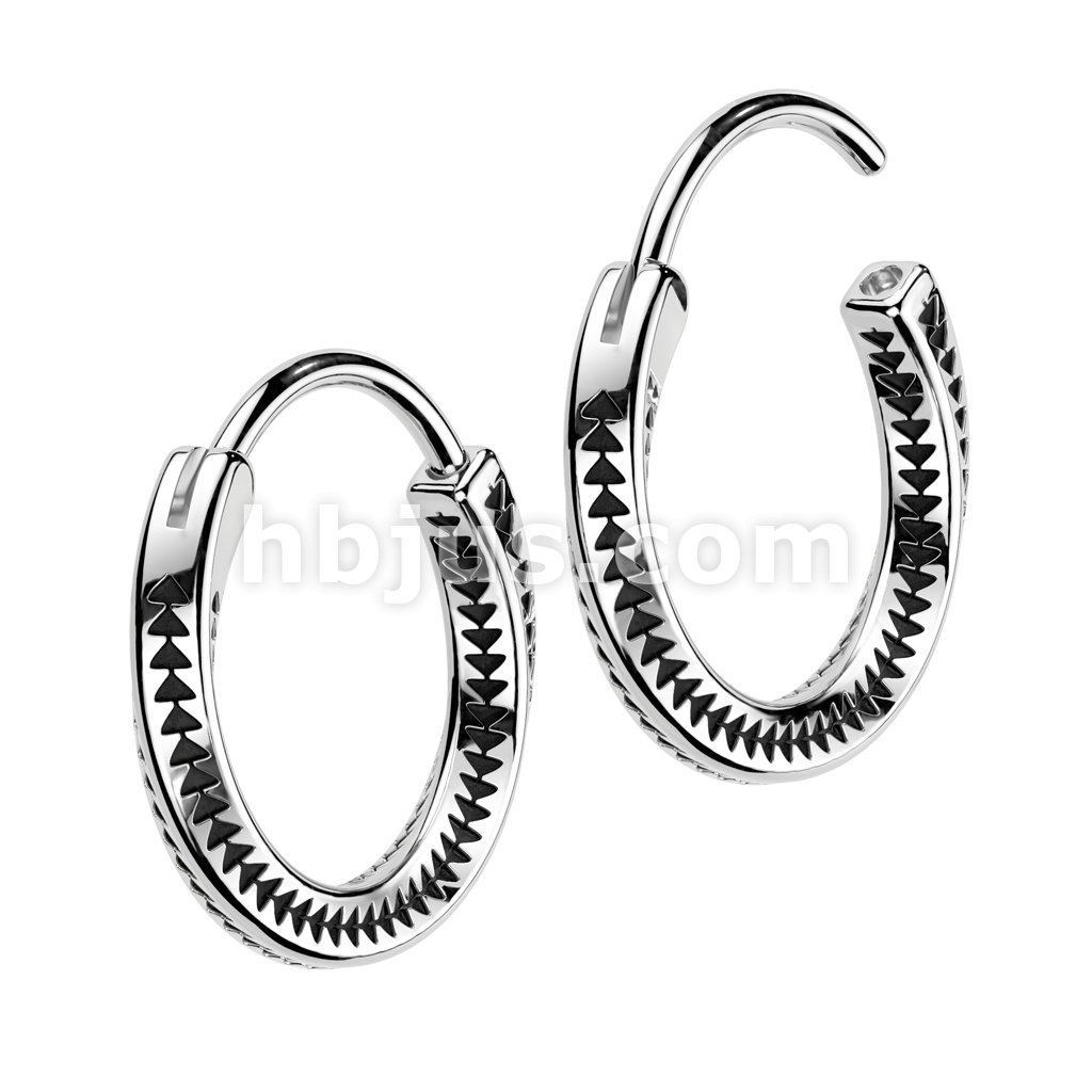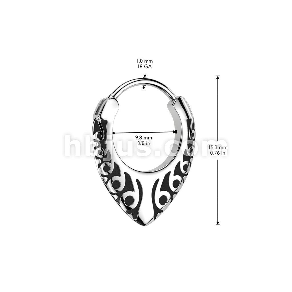 Pair of 316L Stainless Steel Hinged Hoop Earrings With Upside Down Tribal Teardrop