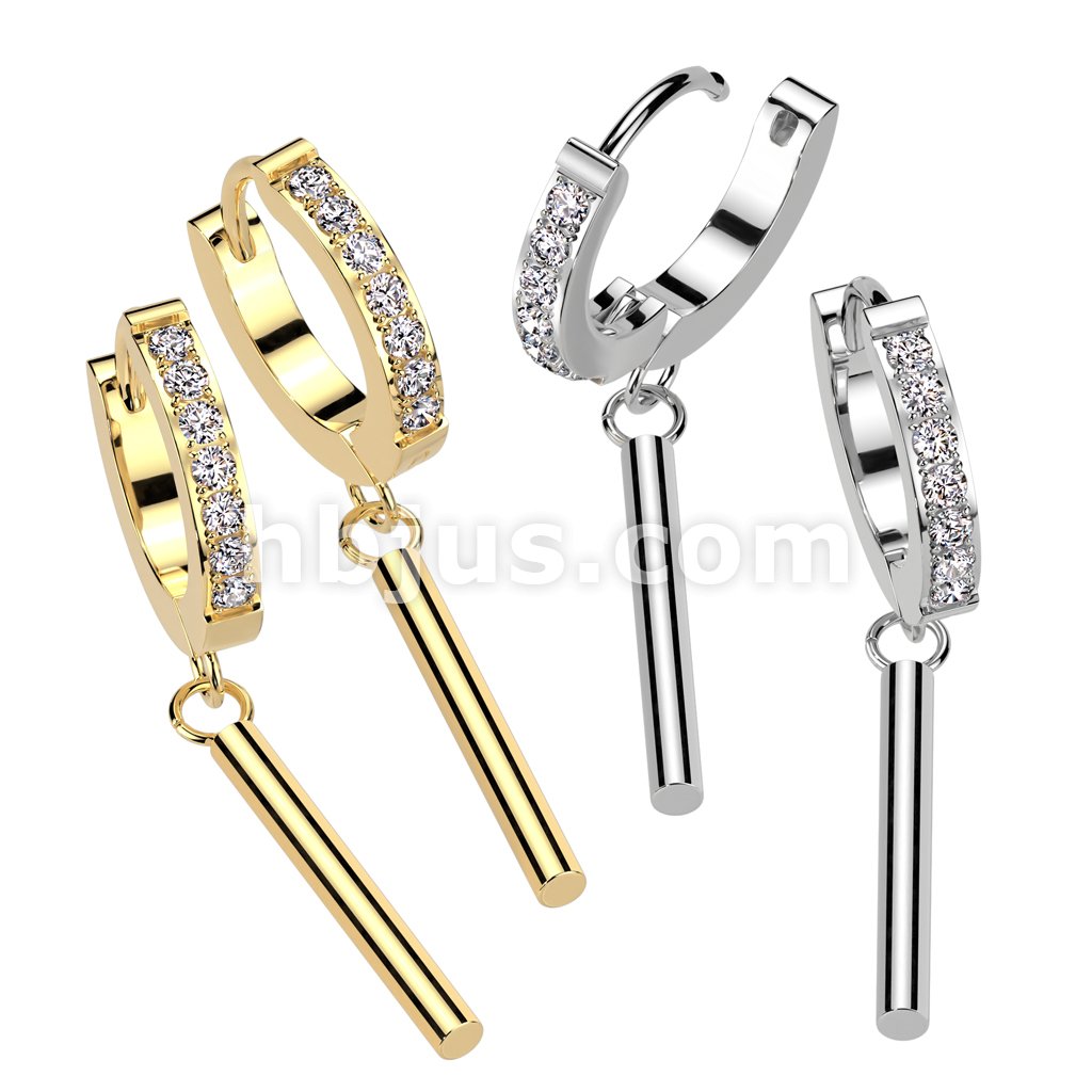 Pair of 316L Stainless Steel Hinged Hoop Earrings With Pave CZ and Bar Dangle