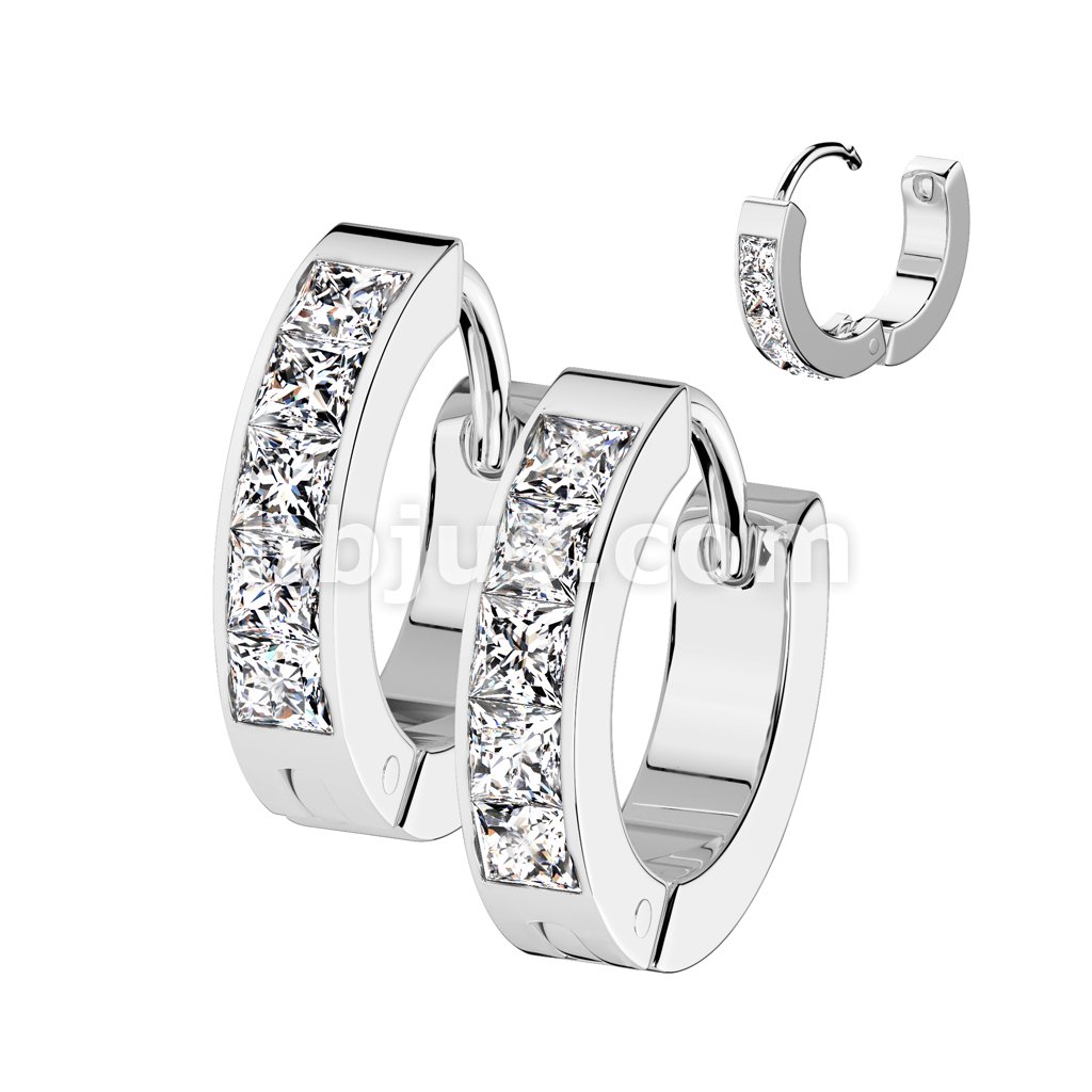 Pair of 316L Stainless Steel Hinged Hoop Earrings With 5 Square CZ