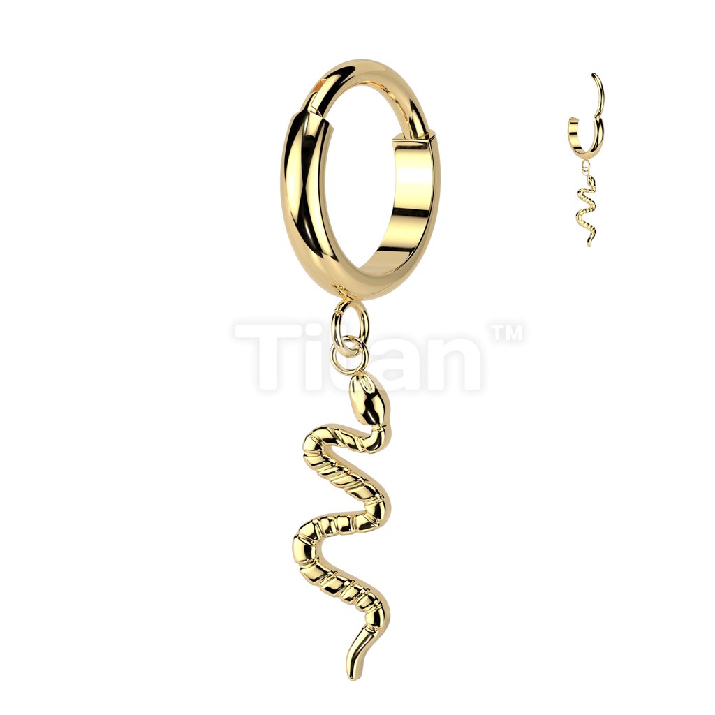 Implant Grade Titanium Hinged 2mm Wide Dome Segment Hoop Ring With Snake Dangle