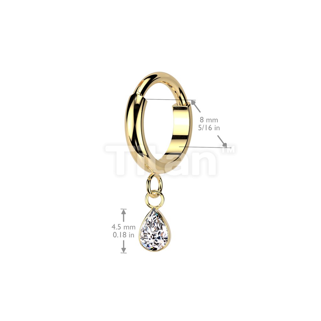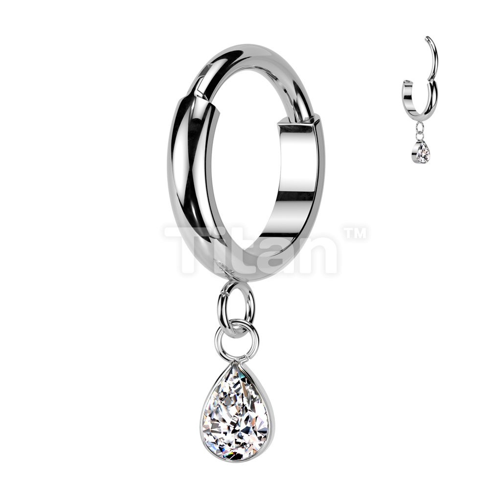 Implant Grade Titanium Hinged 2mm Wide Dome Segment Hoop Ring With Teardrop CZ Dangle