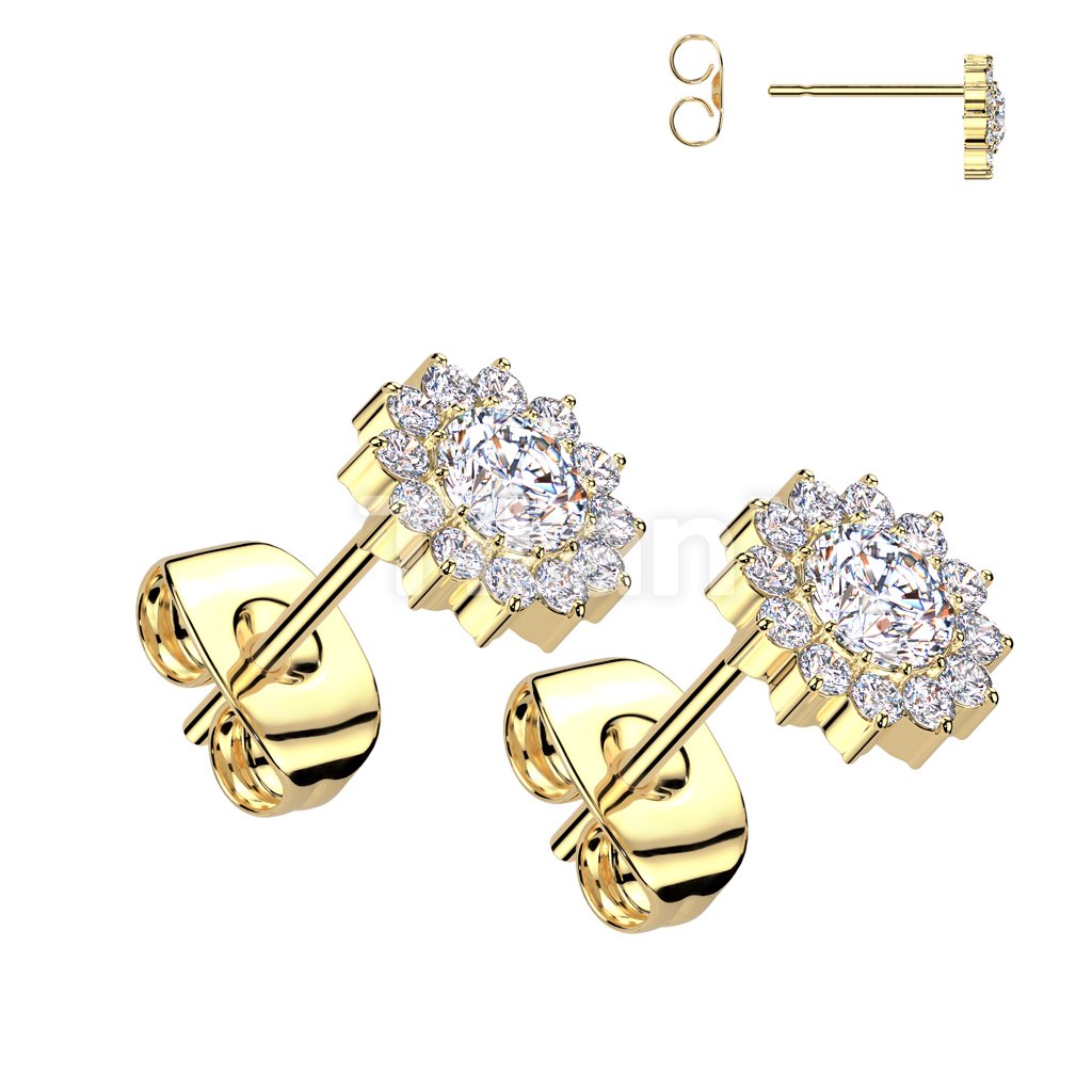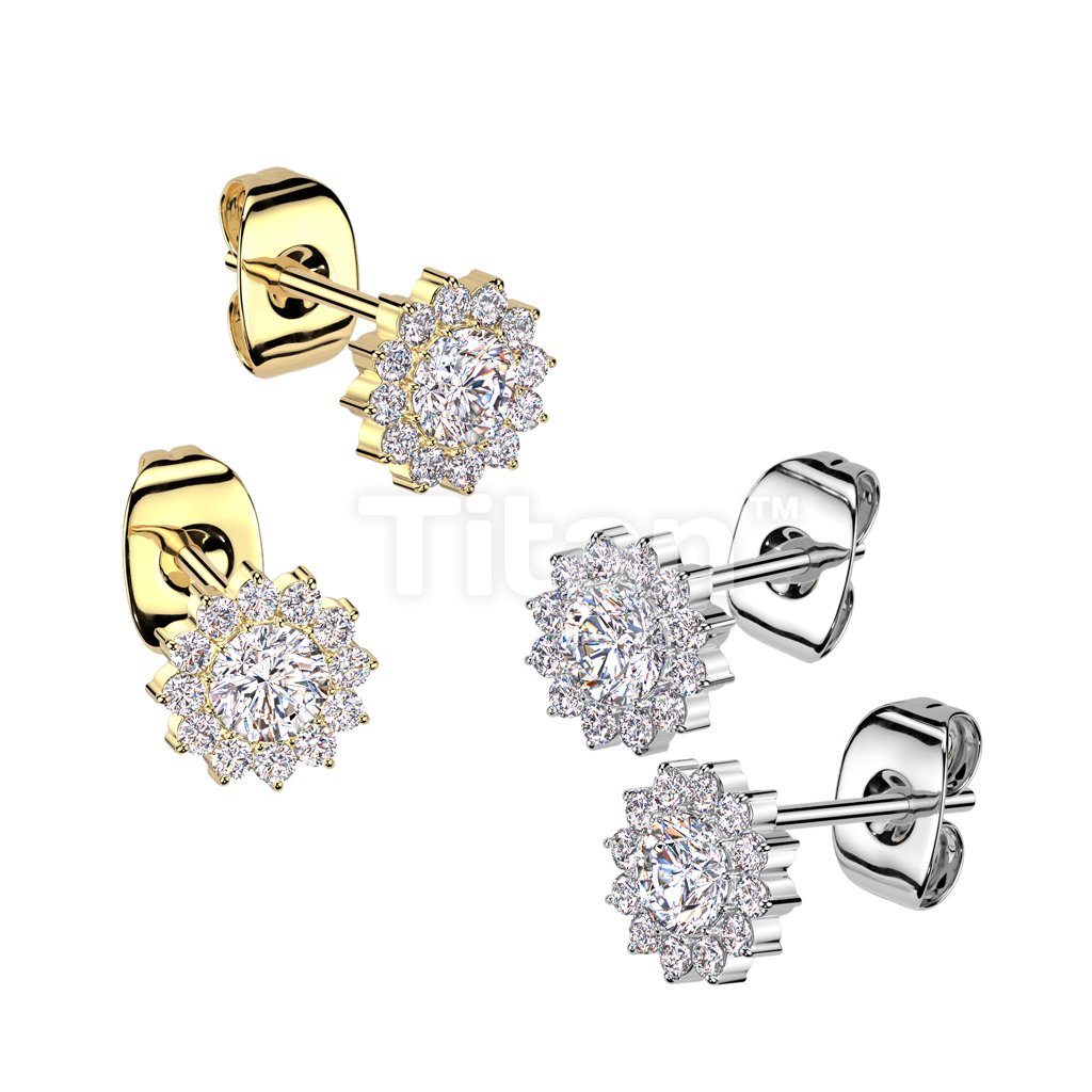 Pair of Implant Grade Titanium CZ Flower Earrings