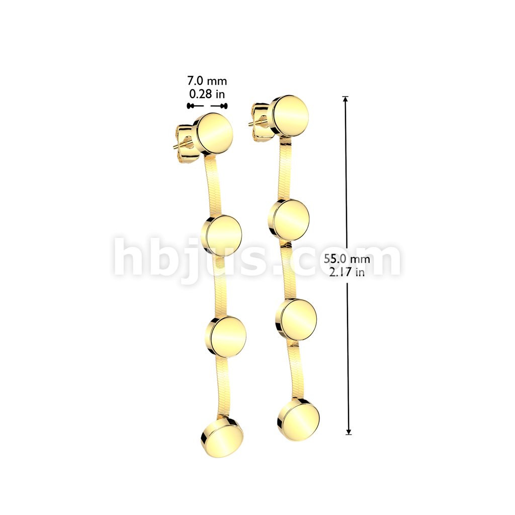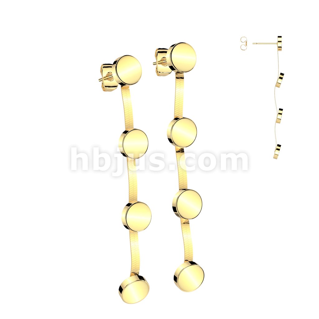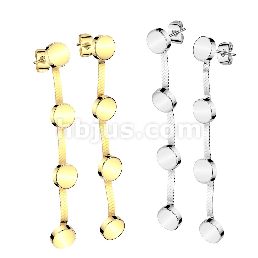 Pair of 316L Stainless Steel Stud Flat Round Earrings With 3 Matching Dangles
