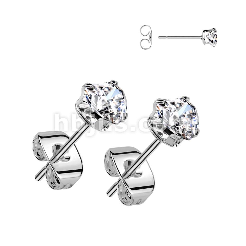 Pair of Implant Grade Titanium Prong Set Earrings With Trinity CZ