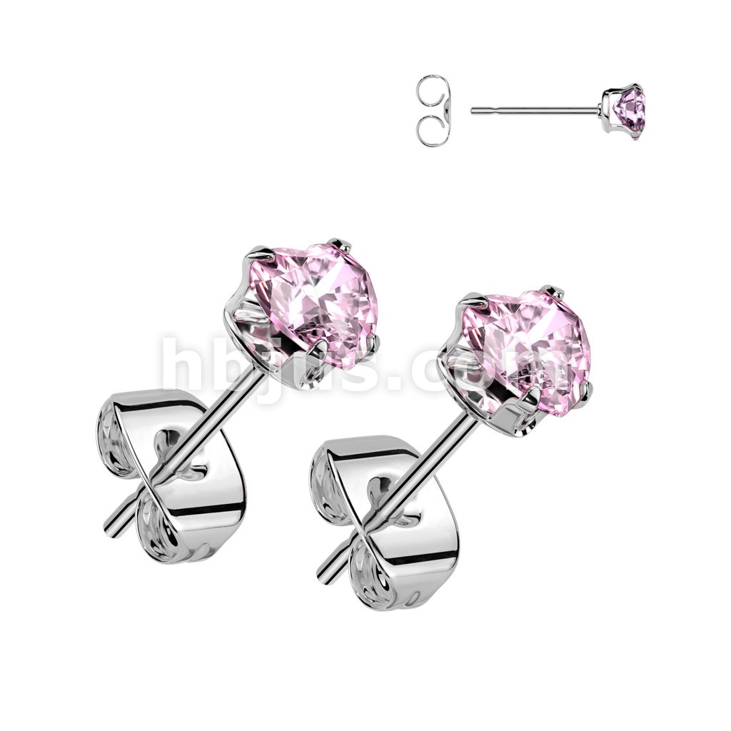 Pair of 316L Surgical Stainless Steel Stud Earrings With Prong Set Heart CZ