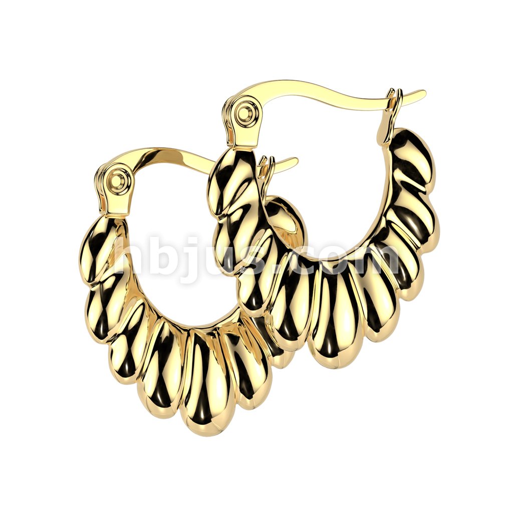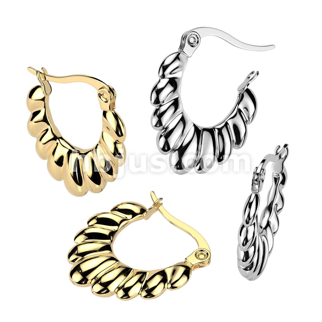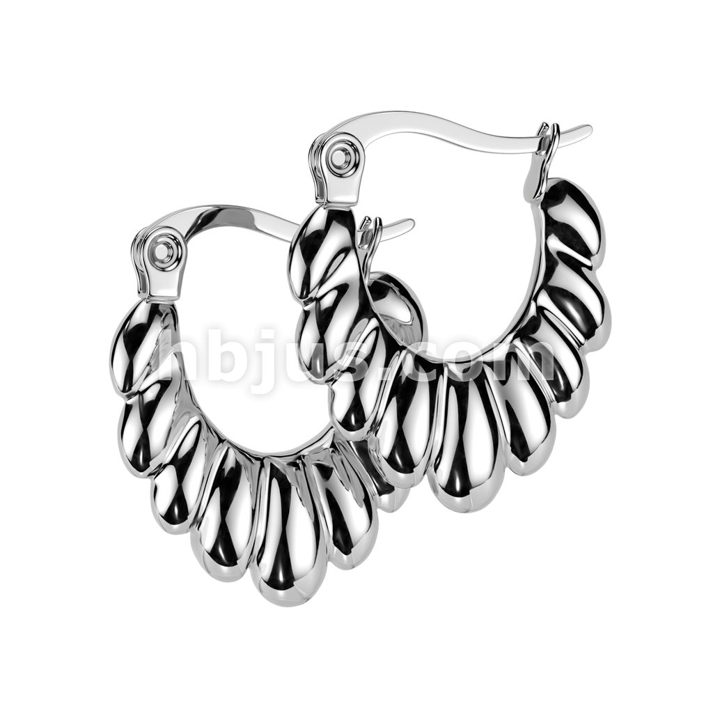 Pair of 316L Stainless Steel Scalloped Oval Hoop Earrings