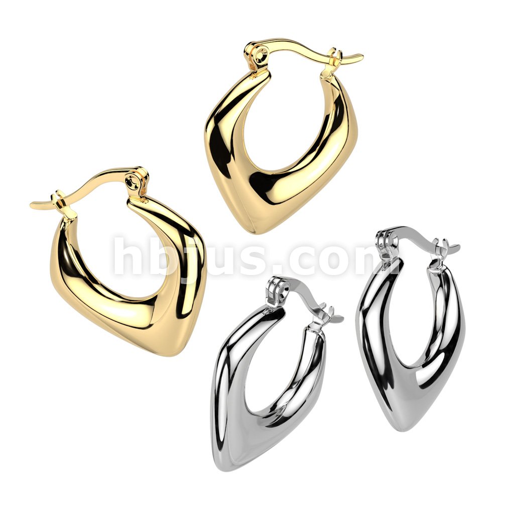 Pair of 316L Stainless Steel 3D Diamond Shaped Hinged Hoop Earrings