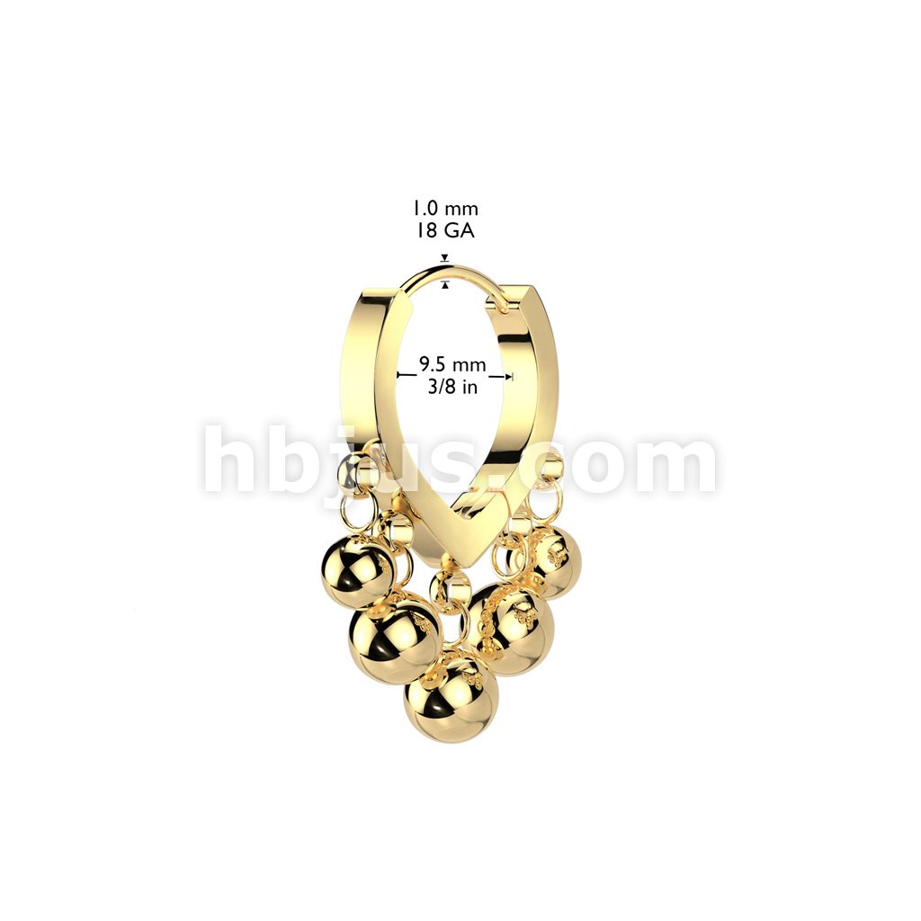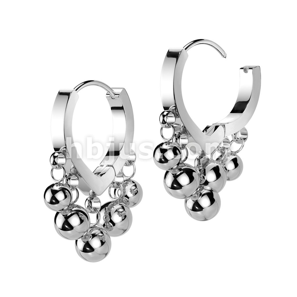 Pair of 316L Stainless Steel Hinged Hoop Earrings With Ascending Dangle Balls