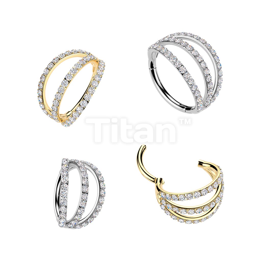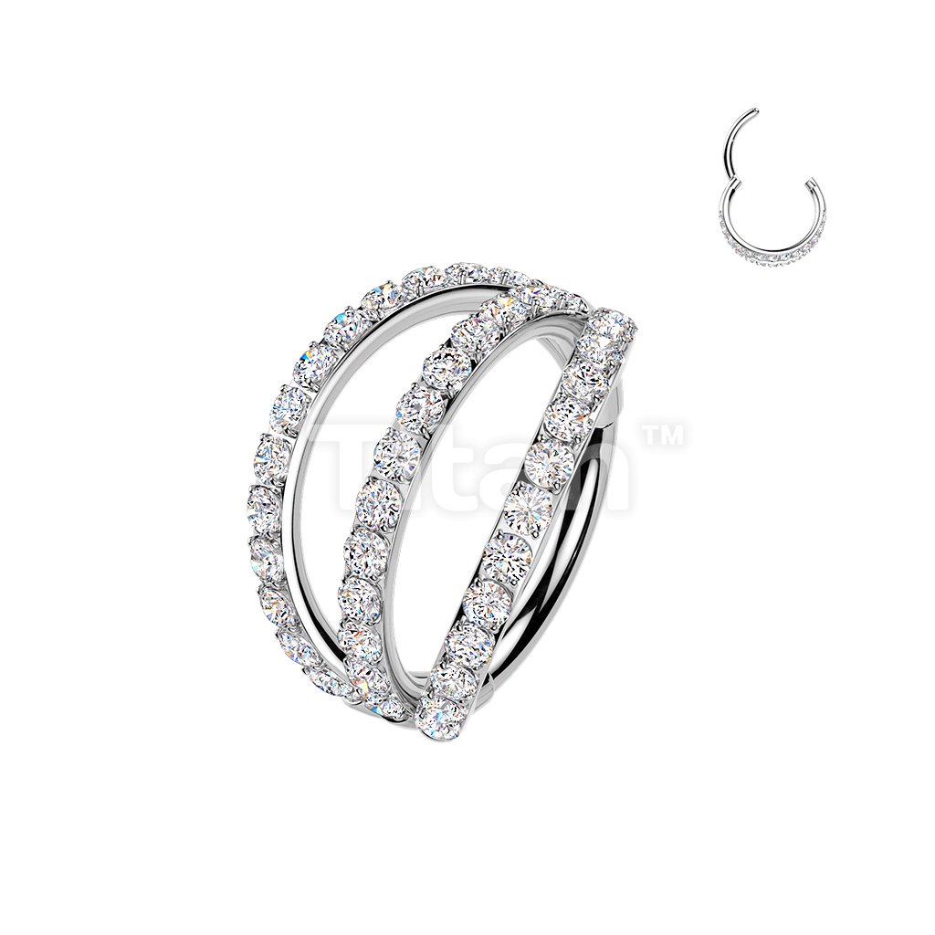 Titanium Hinged Triple Layer Paved CZ Segment Hoop Ring
