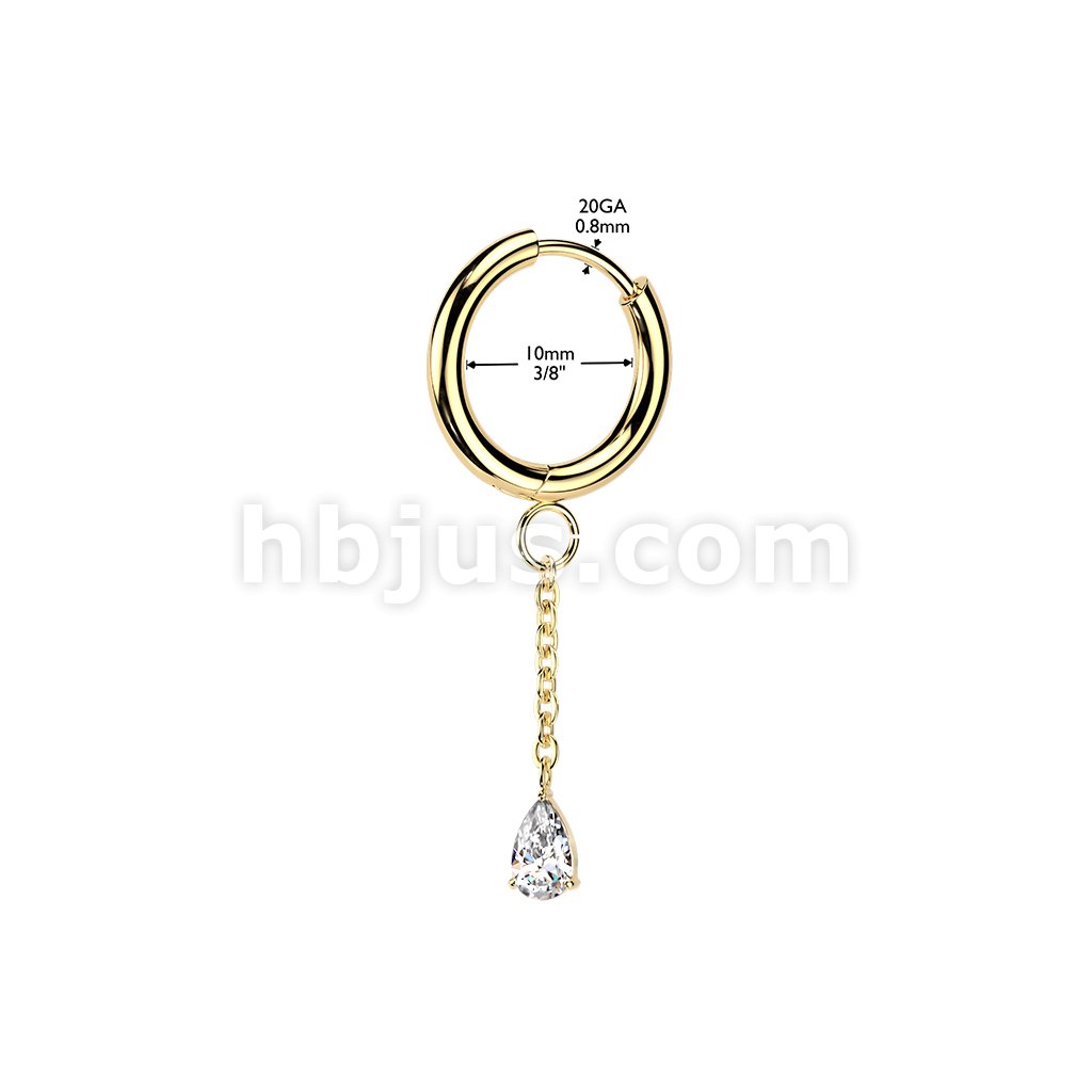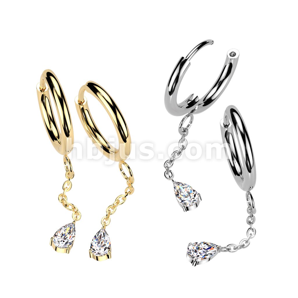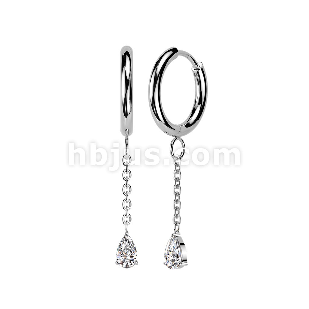 Pair of 316L Hinged Hoop Earrings With Teardrop CZ Dangle