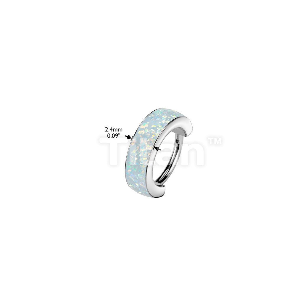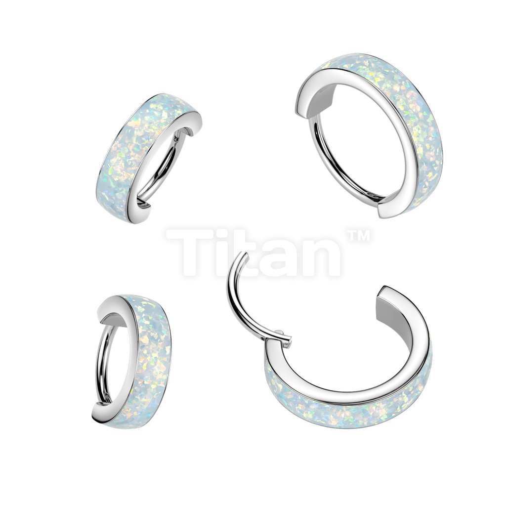 Titanium Hinged Segment Hoop Ring Lined With Wide Outward Facing Opal