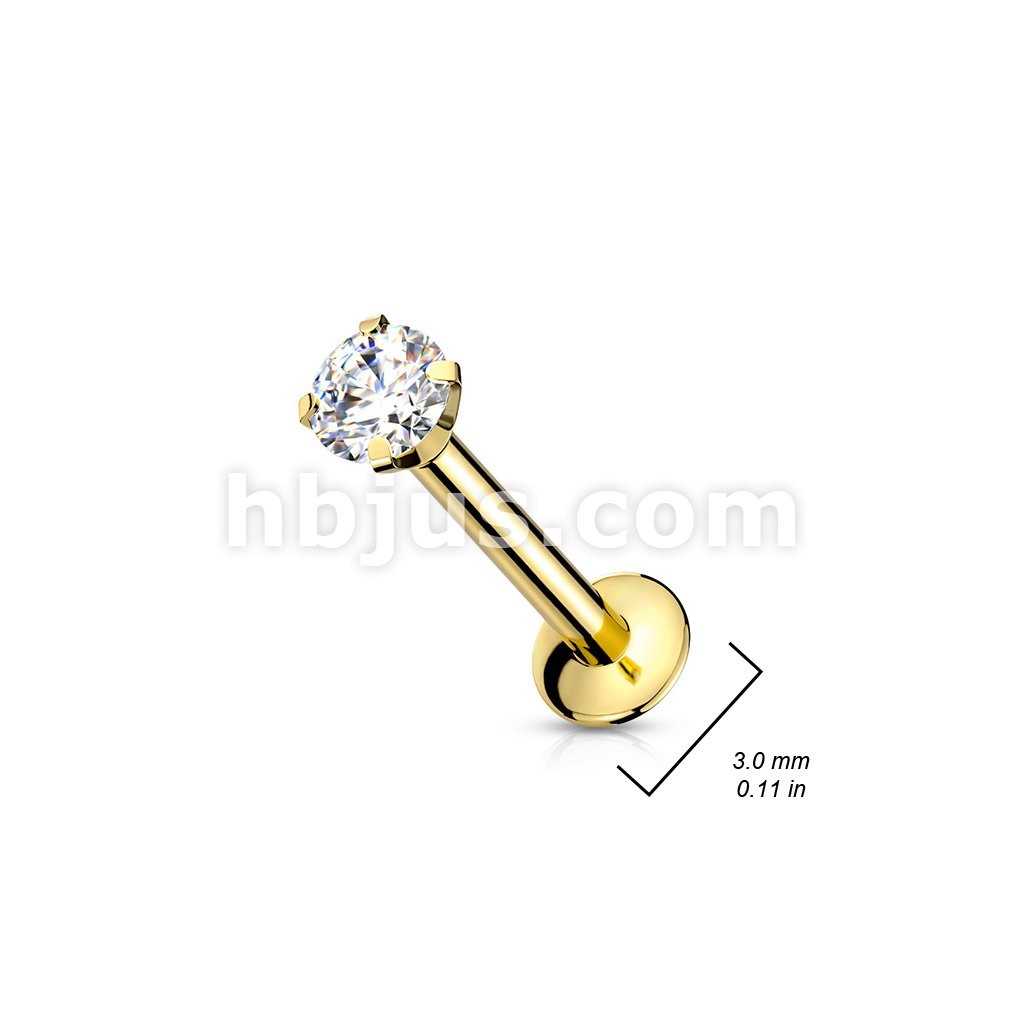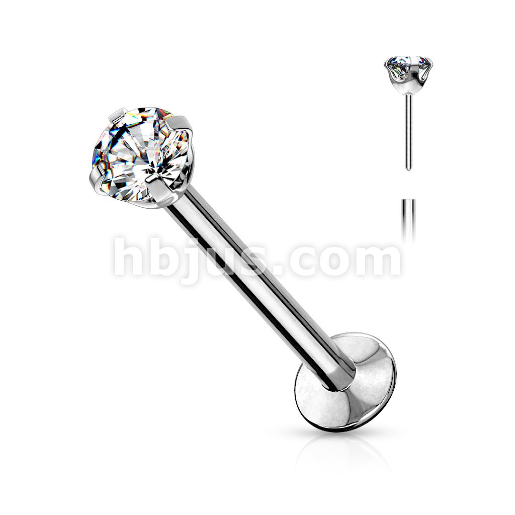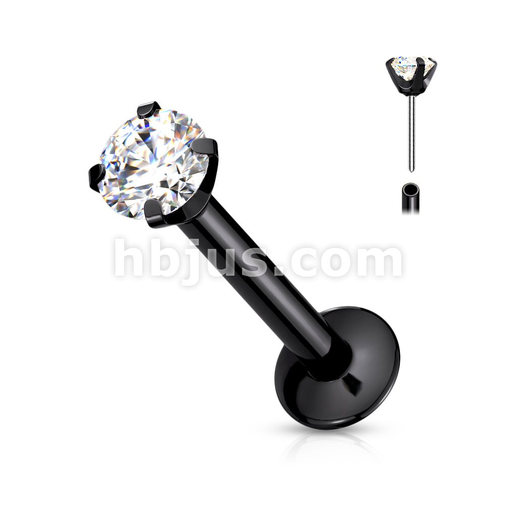 CZ Prong Set Threadless Top PVD Over 316L Surgical Steel Push in StyleLabret, Flat Back Studs