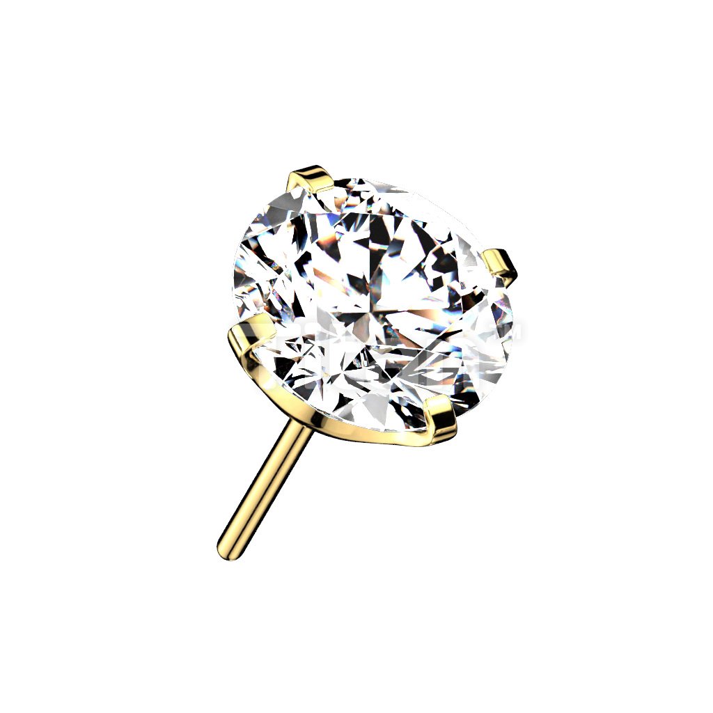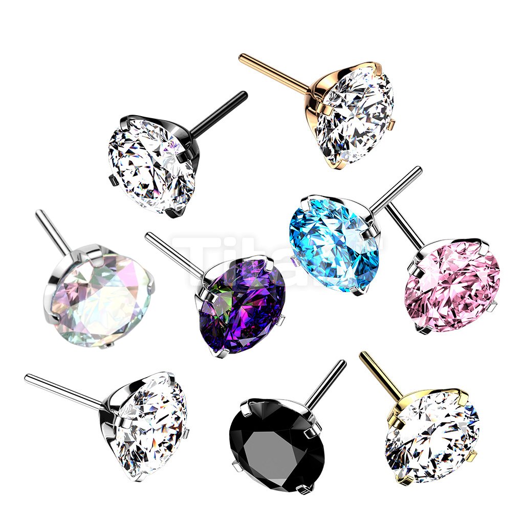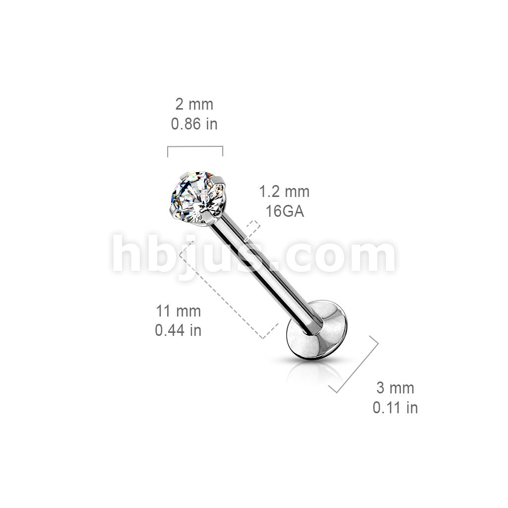 CZ Prong Set Threadless Top PVD Over 316L Surgical Steel Push in StyleLabret, Flat Back Studs