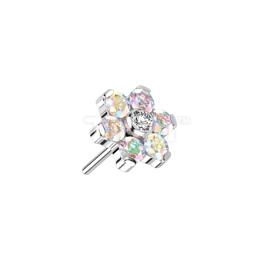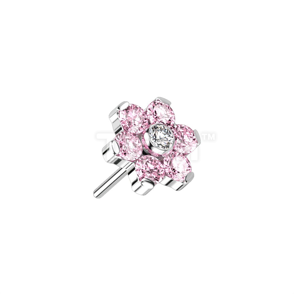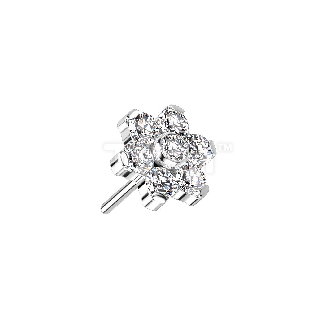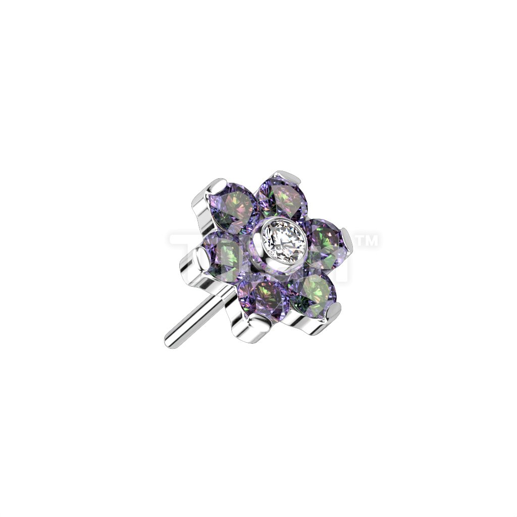 Implant Grade Titanium Threadless Push In CZ Flower With Bezel Set Center and Prong Set Petals