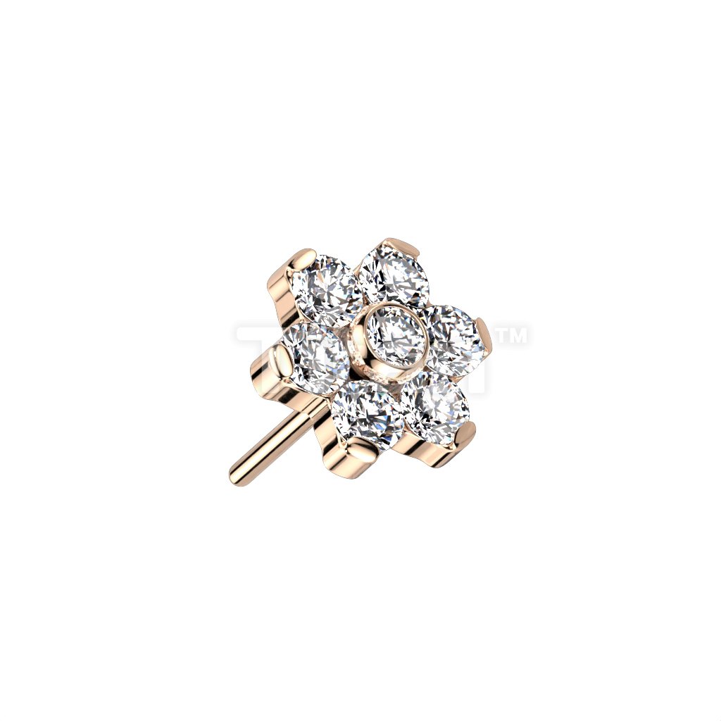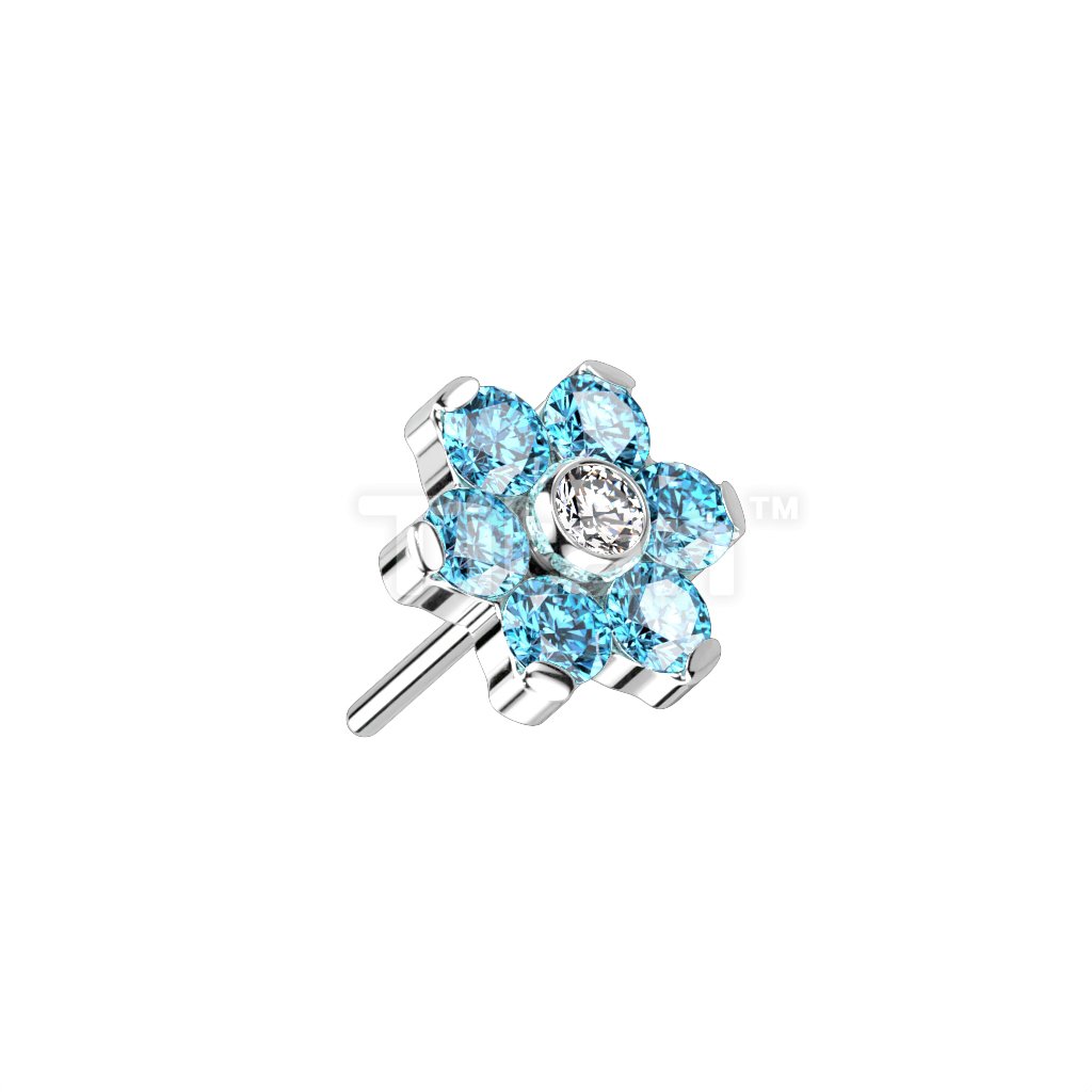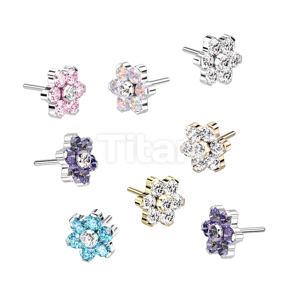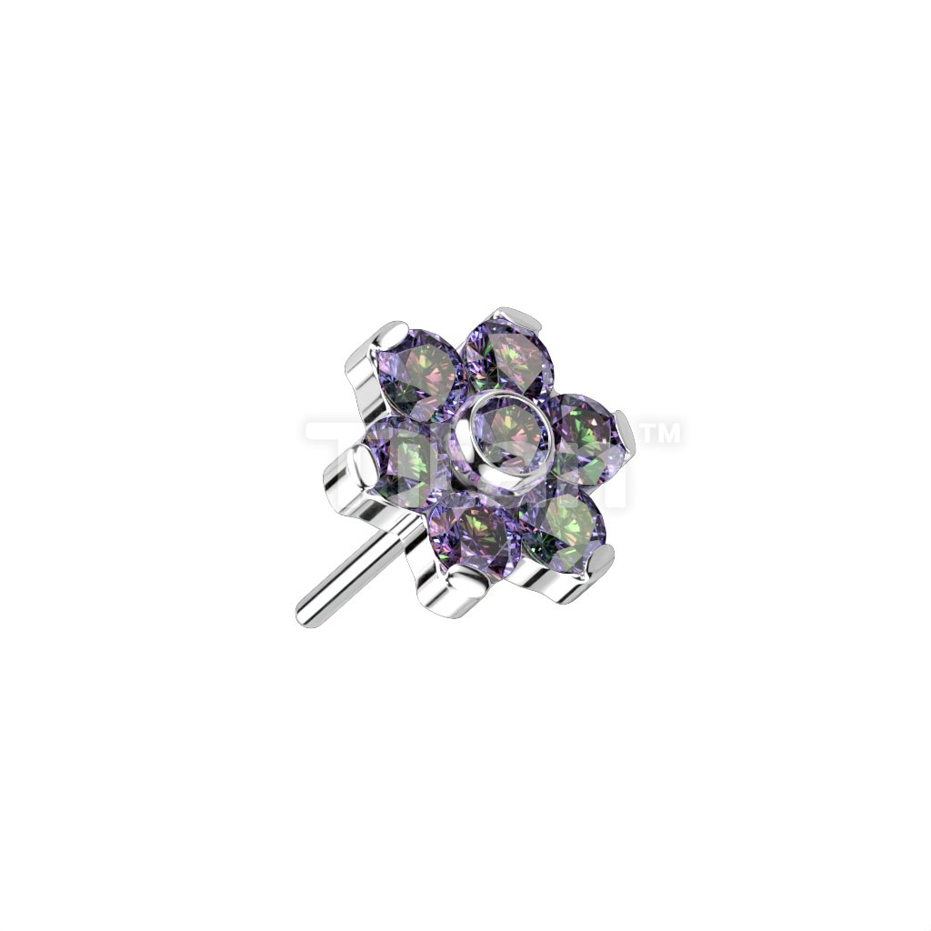 Implant Grade Titanium Threadless Push In CZ Flower With Bezel Set Center and Prong Set Petals