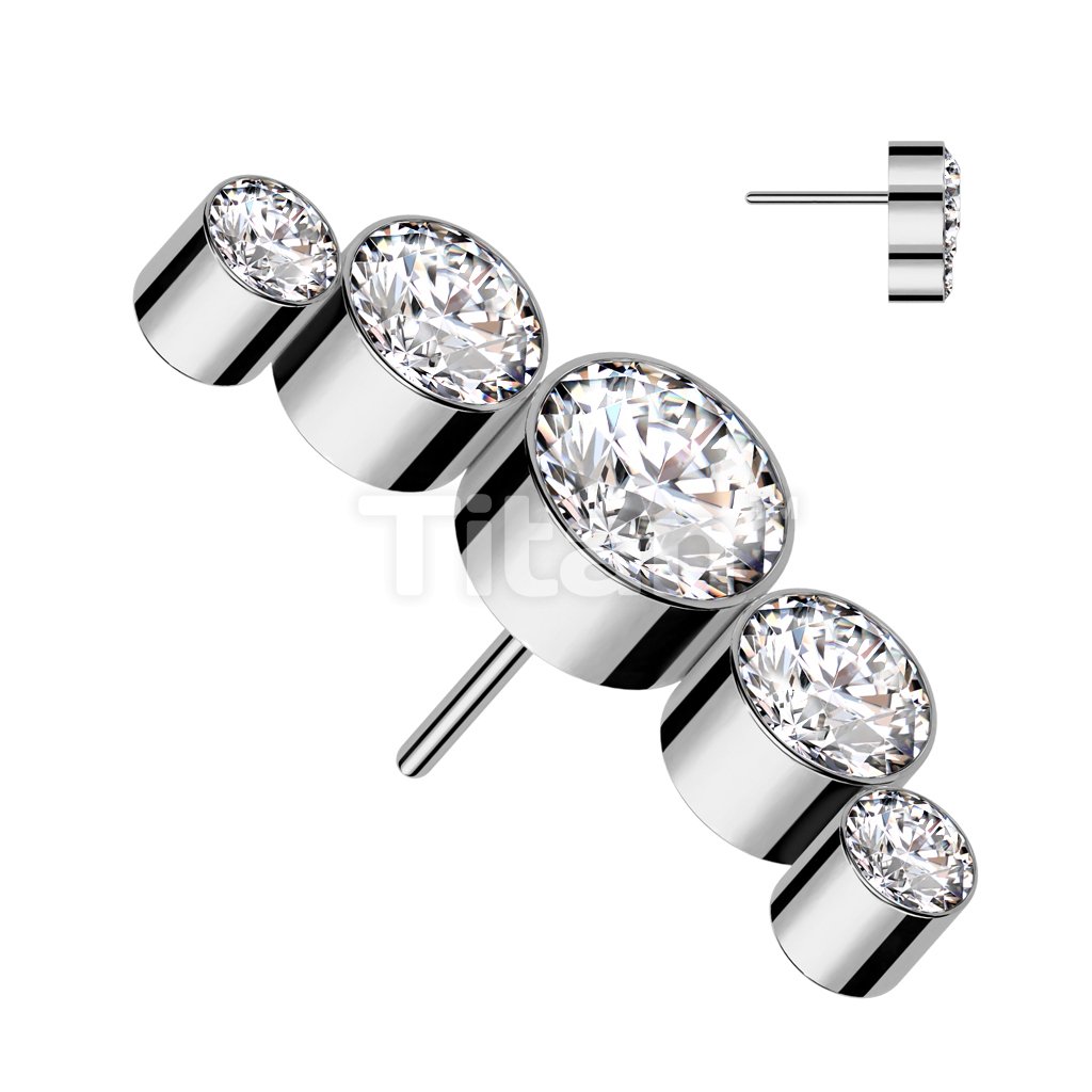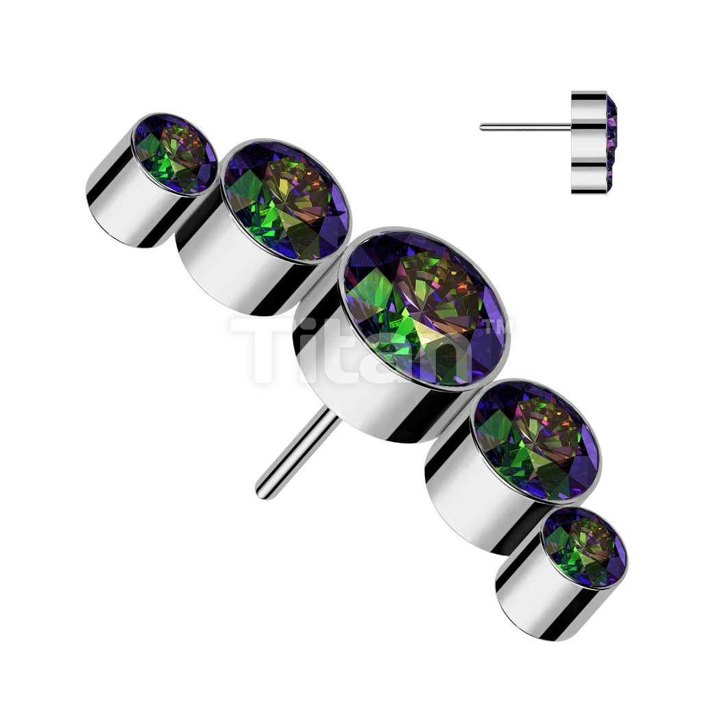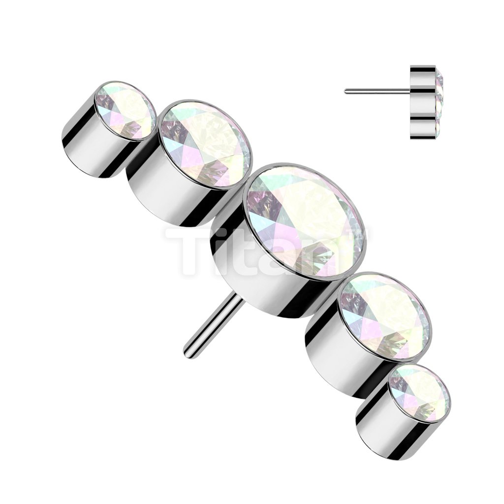 Implant Grade Titanium Threadless Push In 5 Round Bezel Set Swarovski Crystal Curve Top
