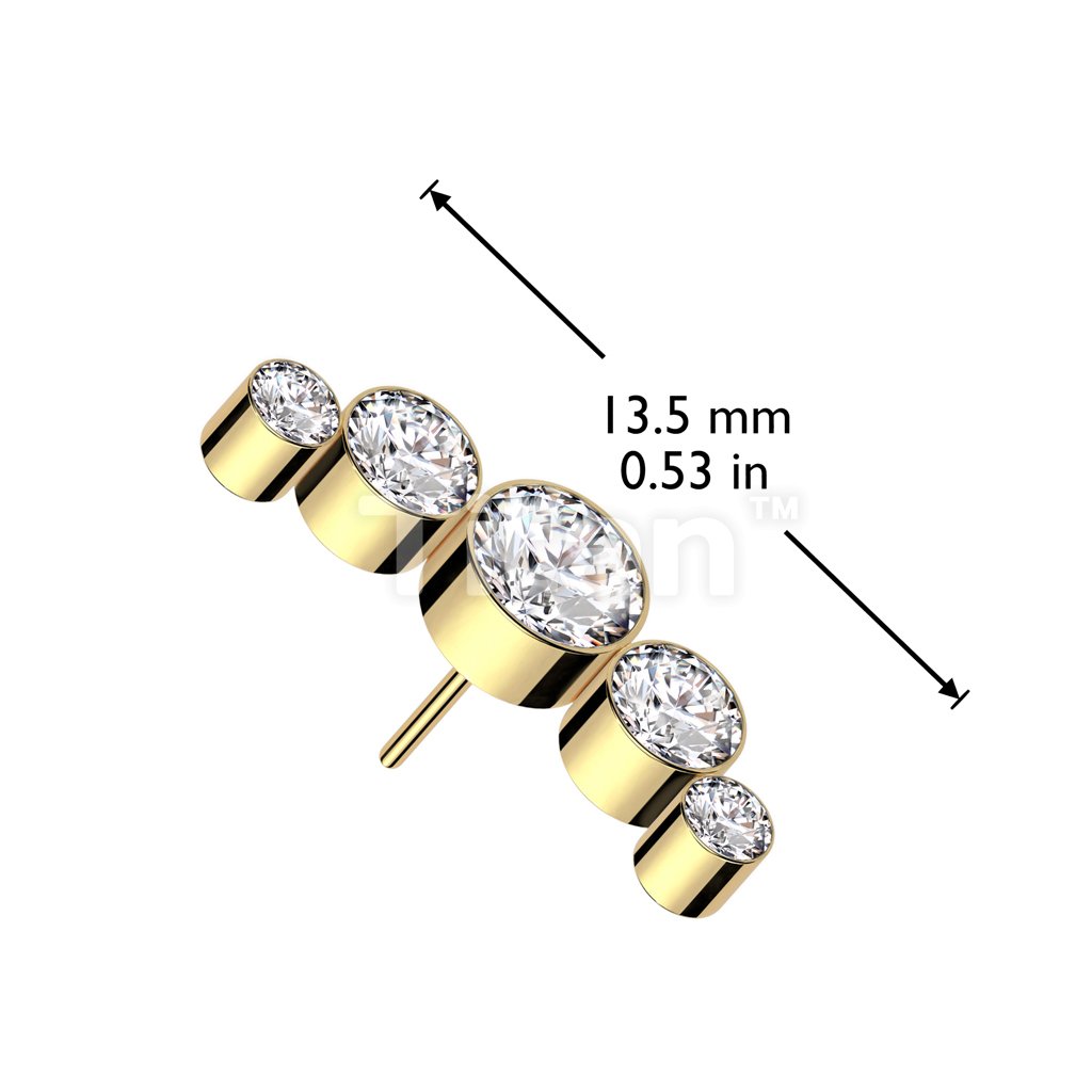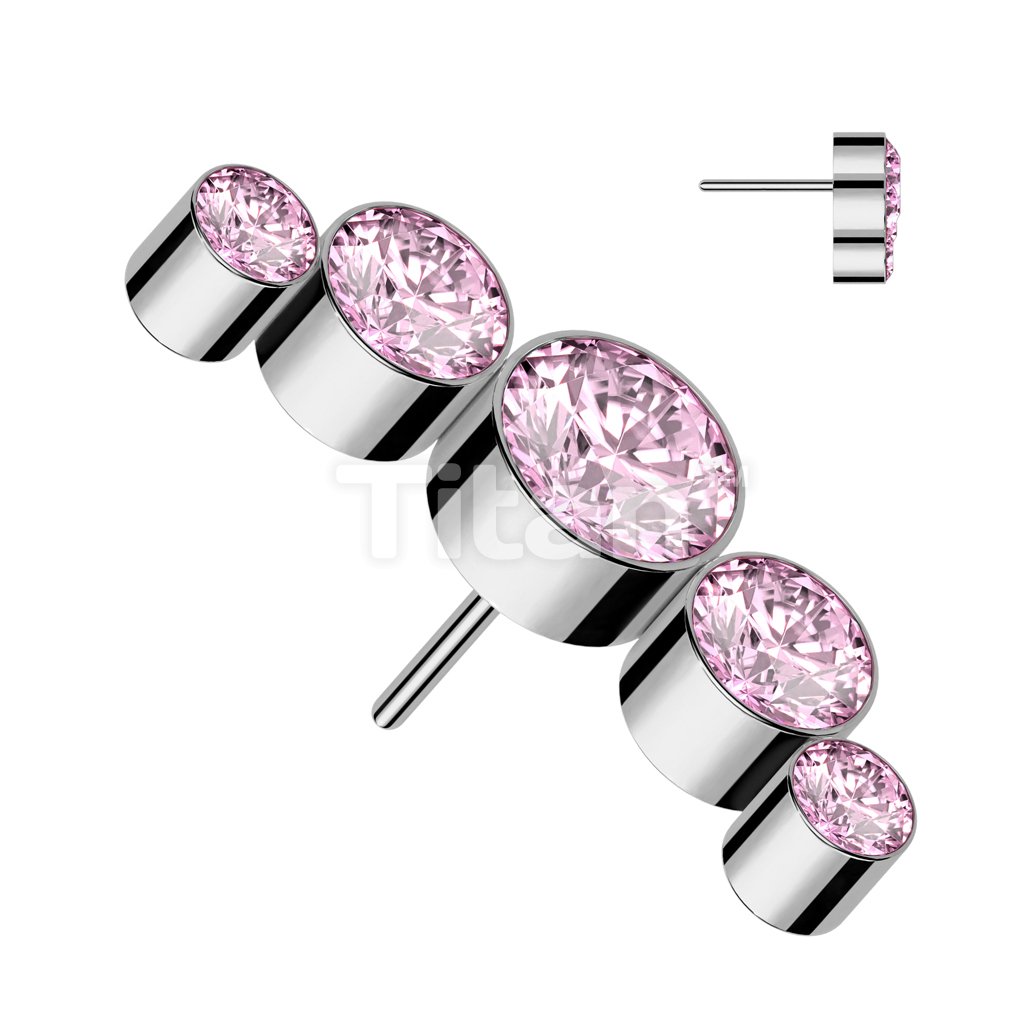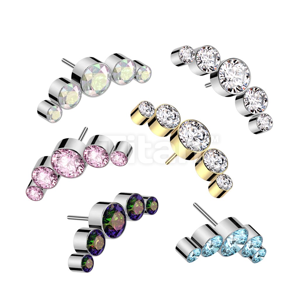 Implant Grade Titanium Threadless Push In 5 Round Bezel Set Swarovski Crystal Curve Top