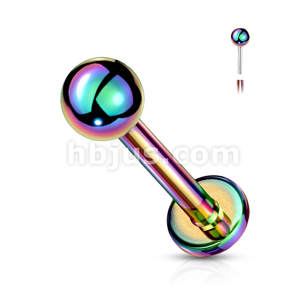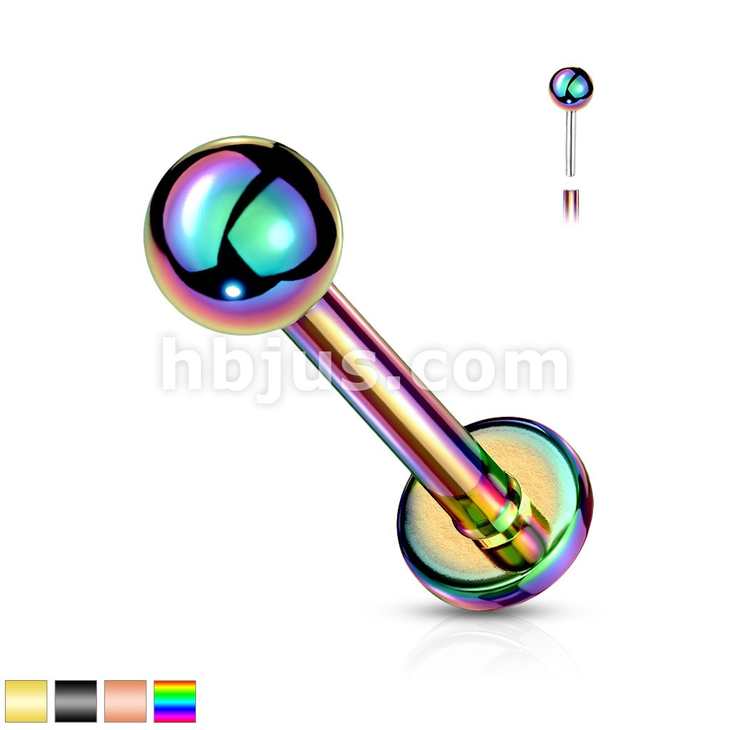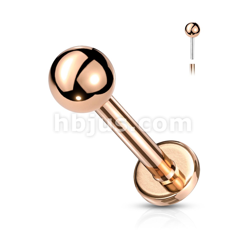 Push In Top Ball PVD Over316L Surgical Steel Threadless Labret, Monroe, Flat Back Stud.