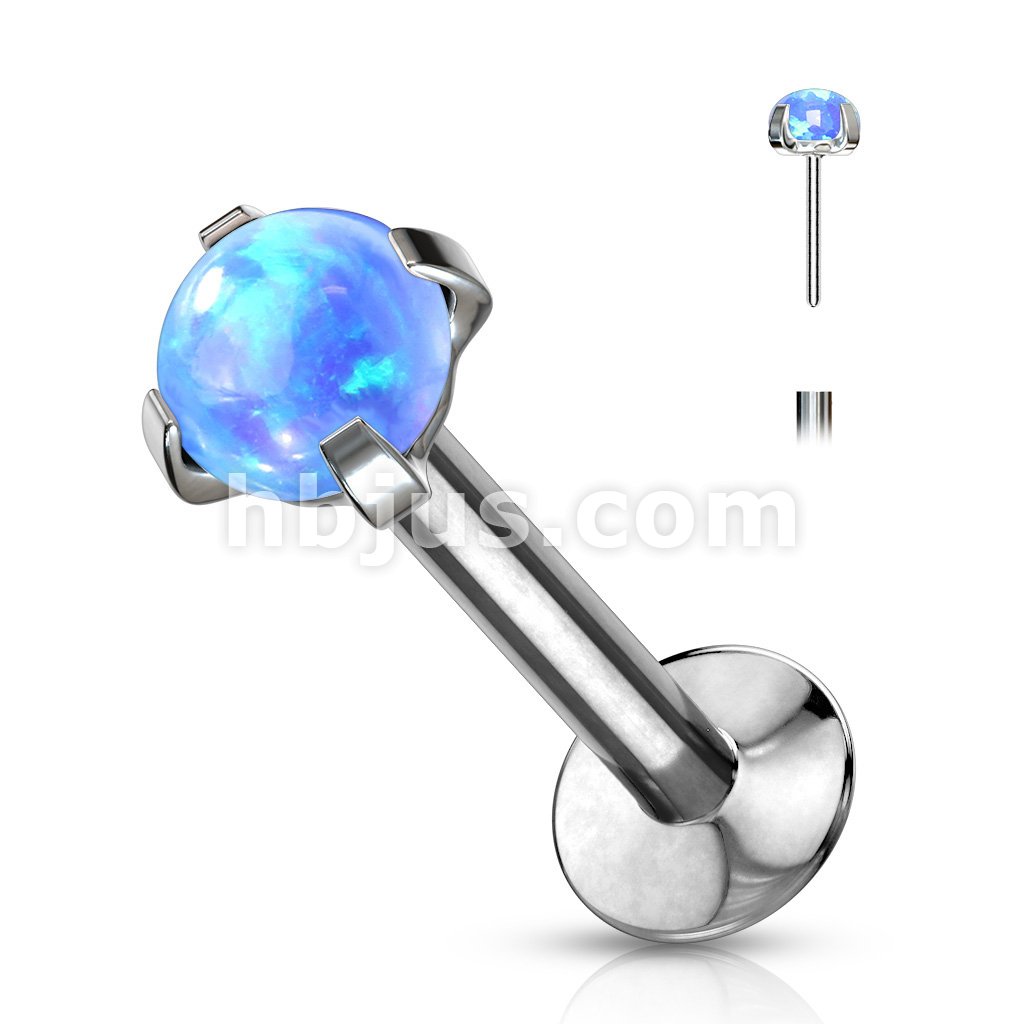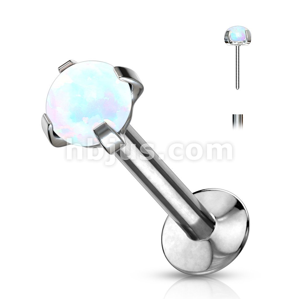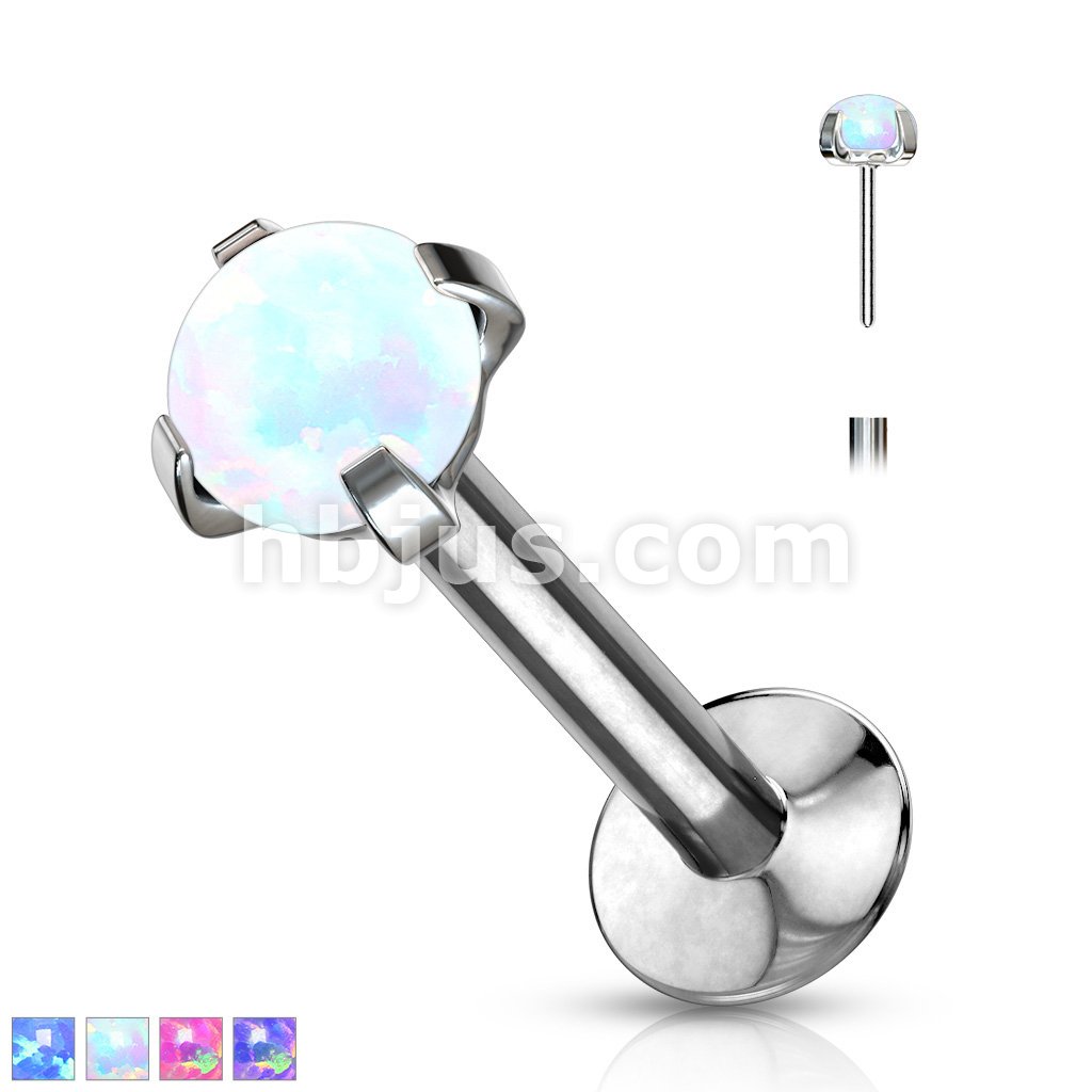 Push In Prong Set Opal Top 316L Surgical Steel Flat Back Studs for Labret, Monroe, Ear Cartilage, and More