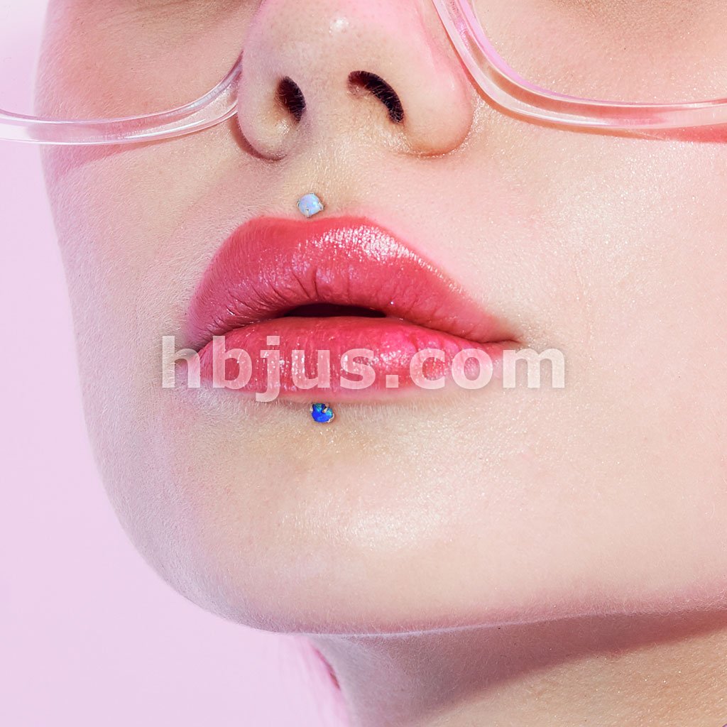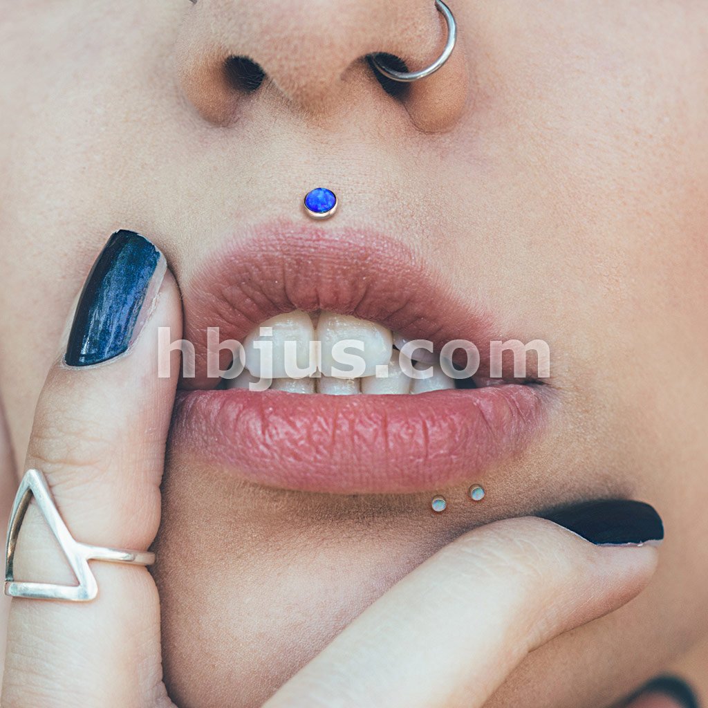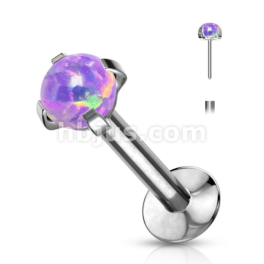 Push In Prong Set Opal Top 316L Surgical Steel Flat Back Studs for Labret, Monroe, Ear Cartilage, and More