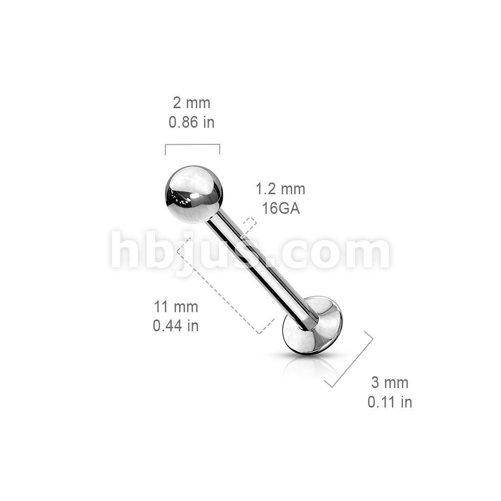 Push In Top Ball 316L Surgical Steel Threadless Labret, Monroe, Flat Back Stud With 3mm Convex Base