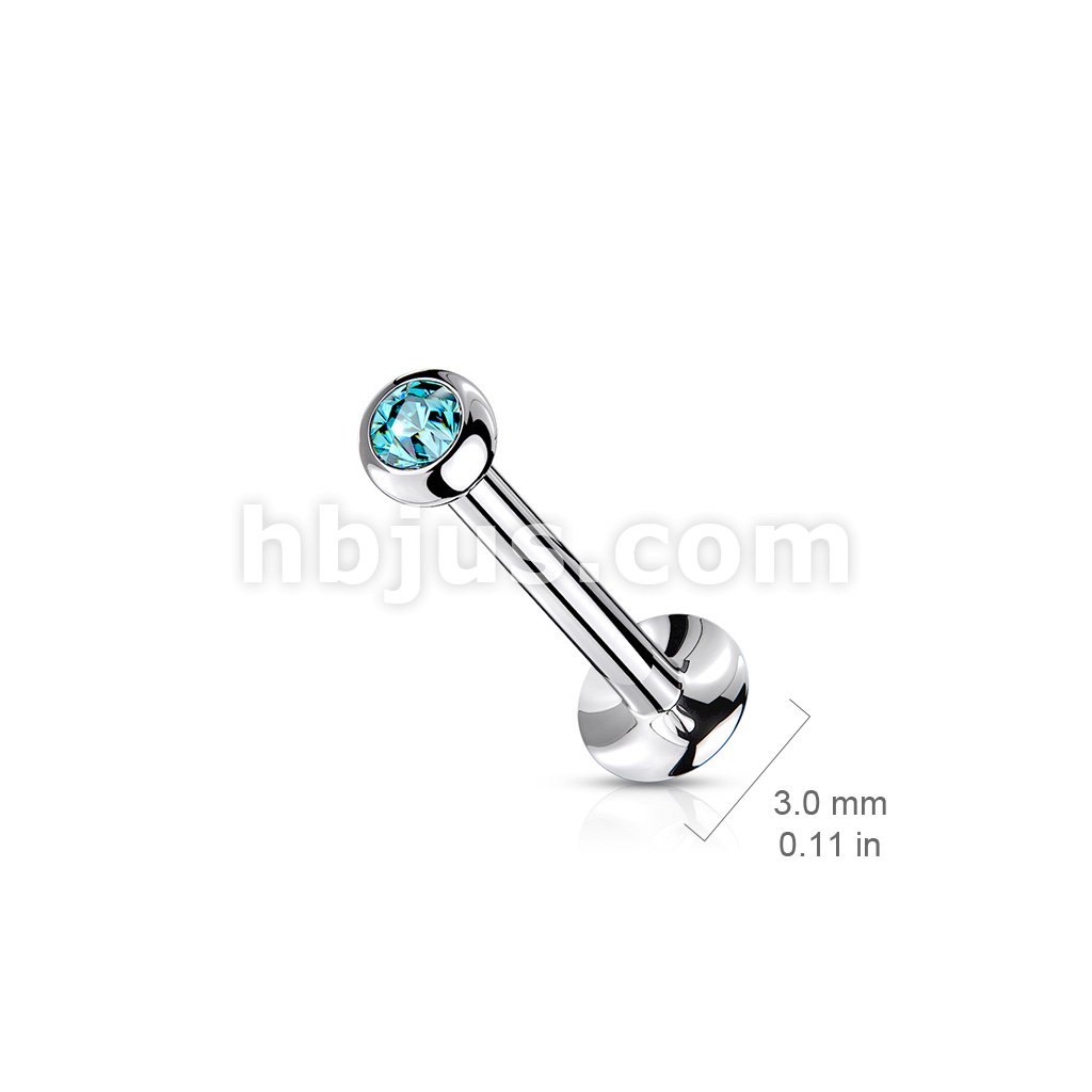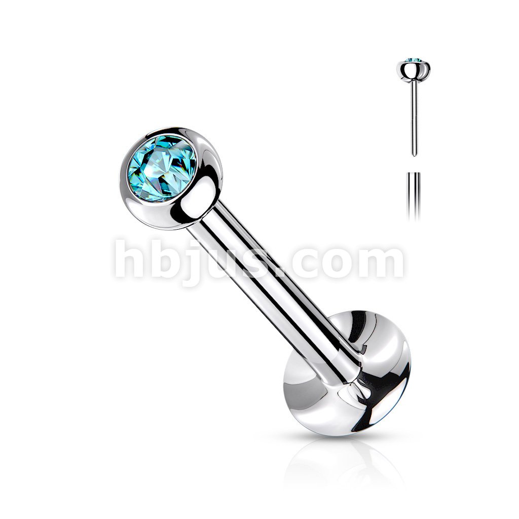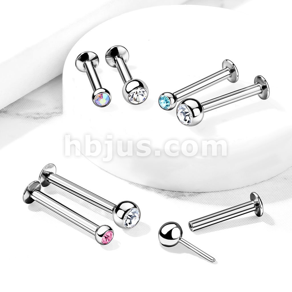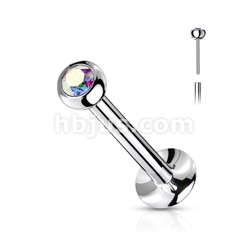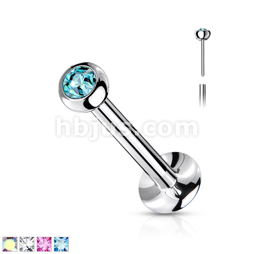 Push In Jeweled Ball Top 316L Surgical Steel Threadless Labret, Monroe, Flat Back Stud.